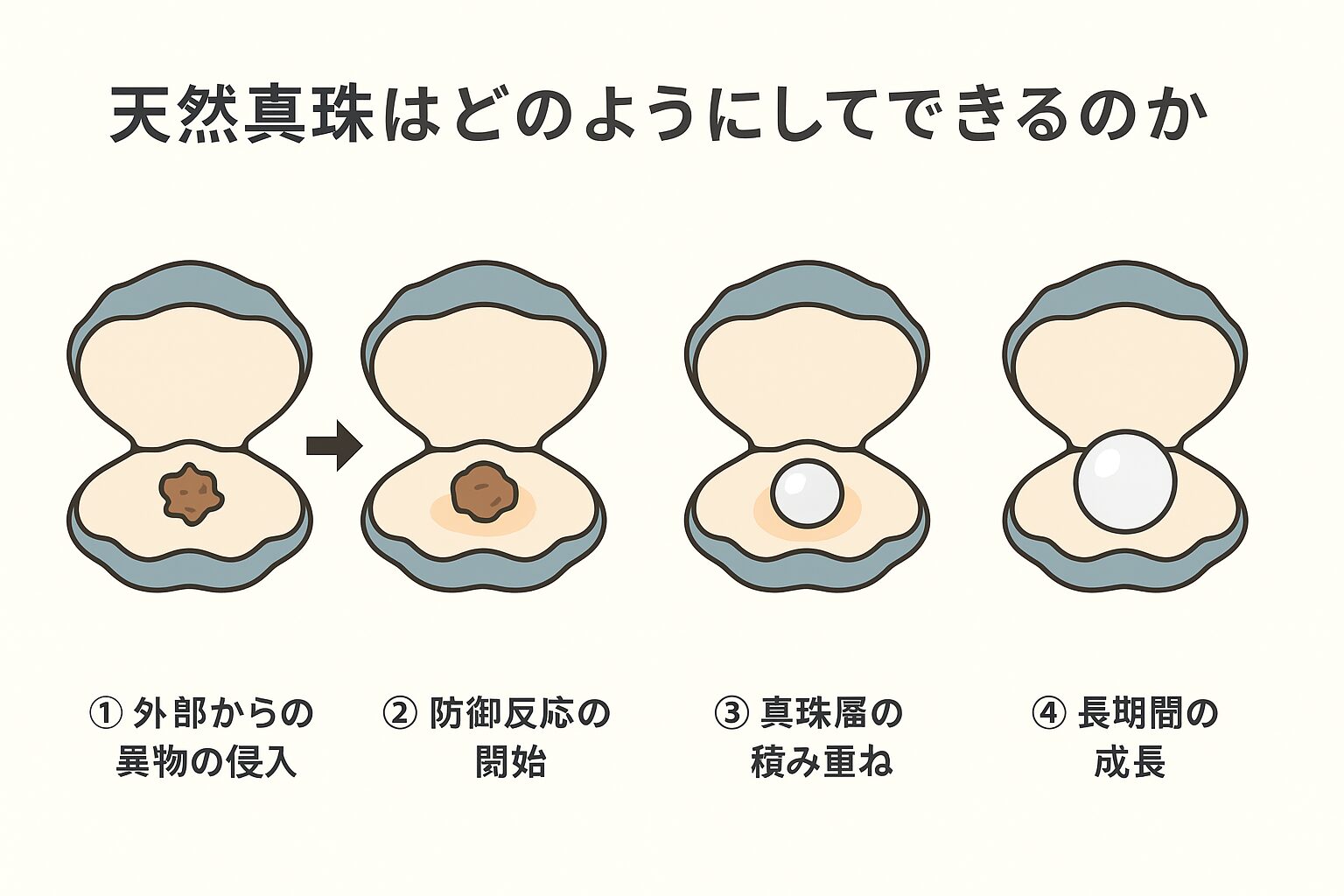 この記事では、天然真珠ができる仕組みを科学的かつわかりやすく解説していきます。