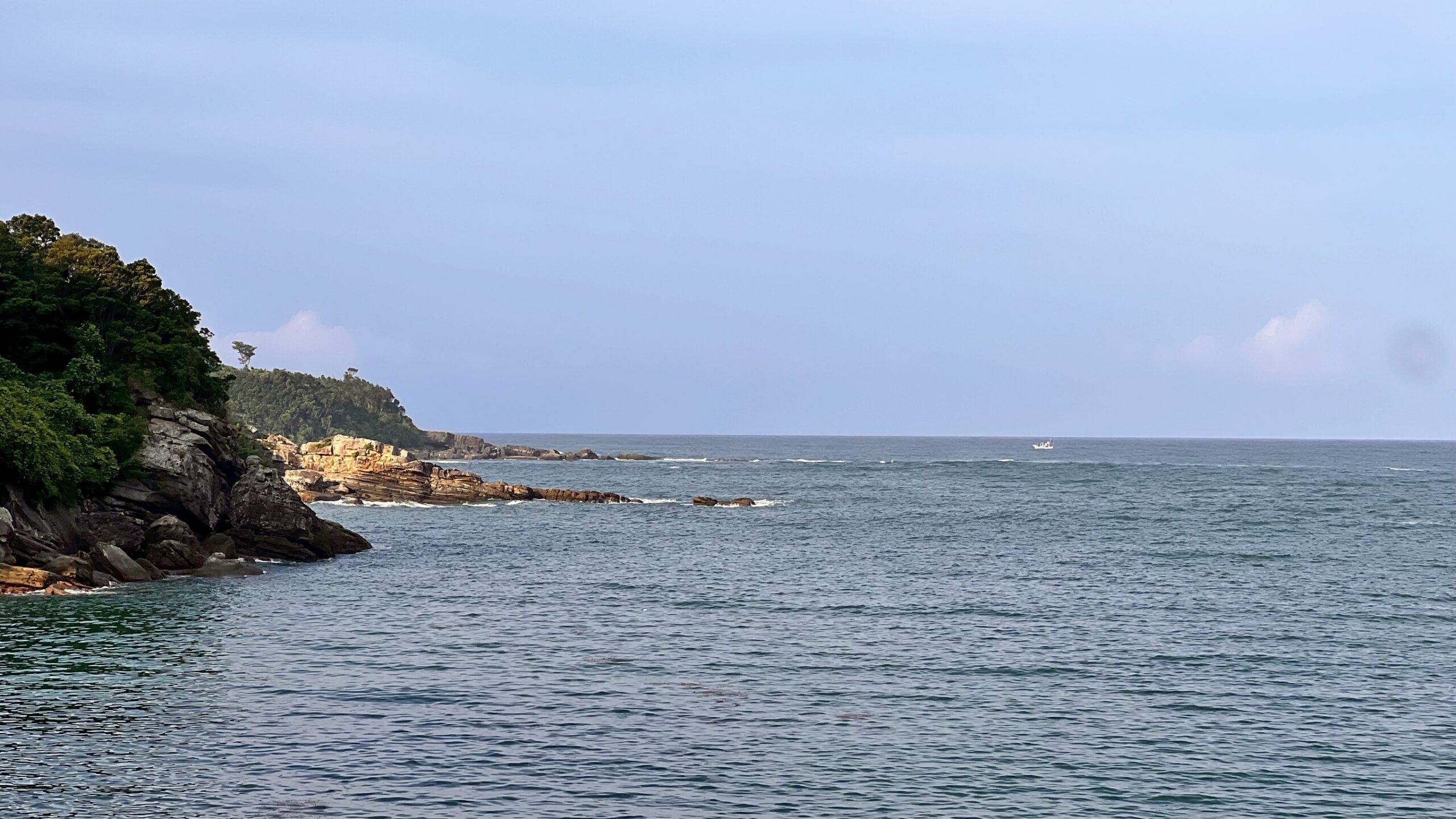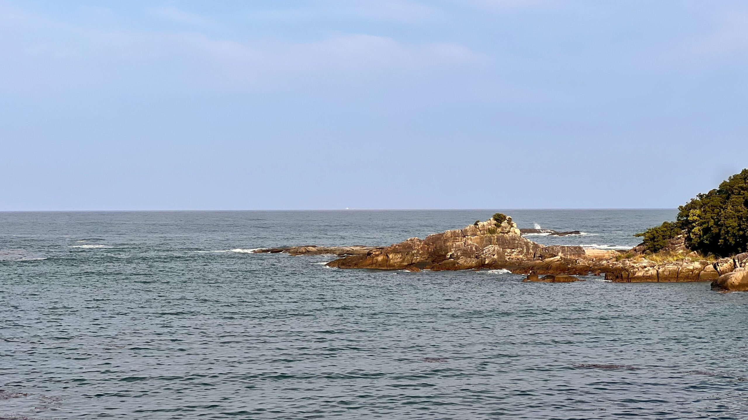 8/8穏やかに見える白浜町袋も時折、波が磯を超えている