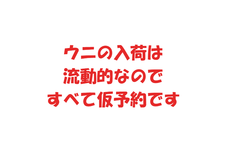 ウニの入荷は流動的なので、すべて「仮予約」です。