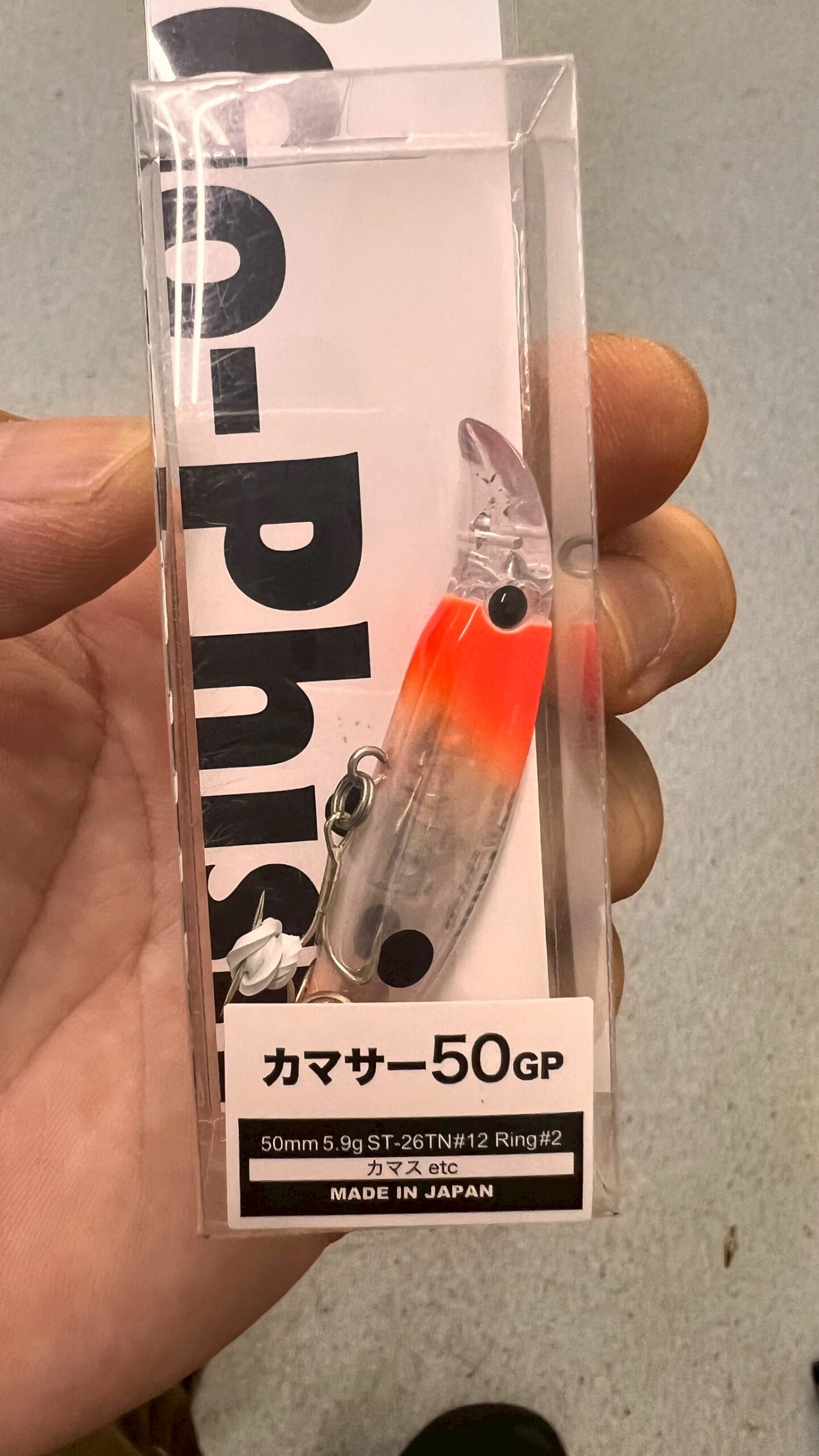 GPカラーは赤とチャートが水中で強く目立ち、濁り潮やローライト時に効果大。