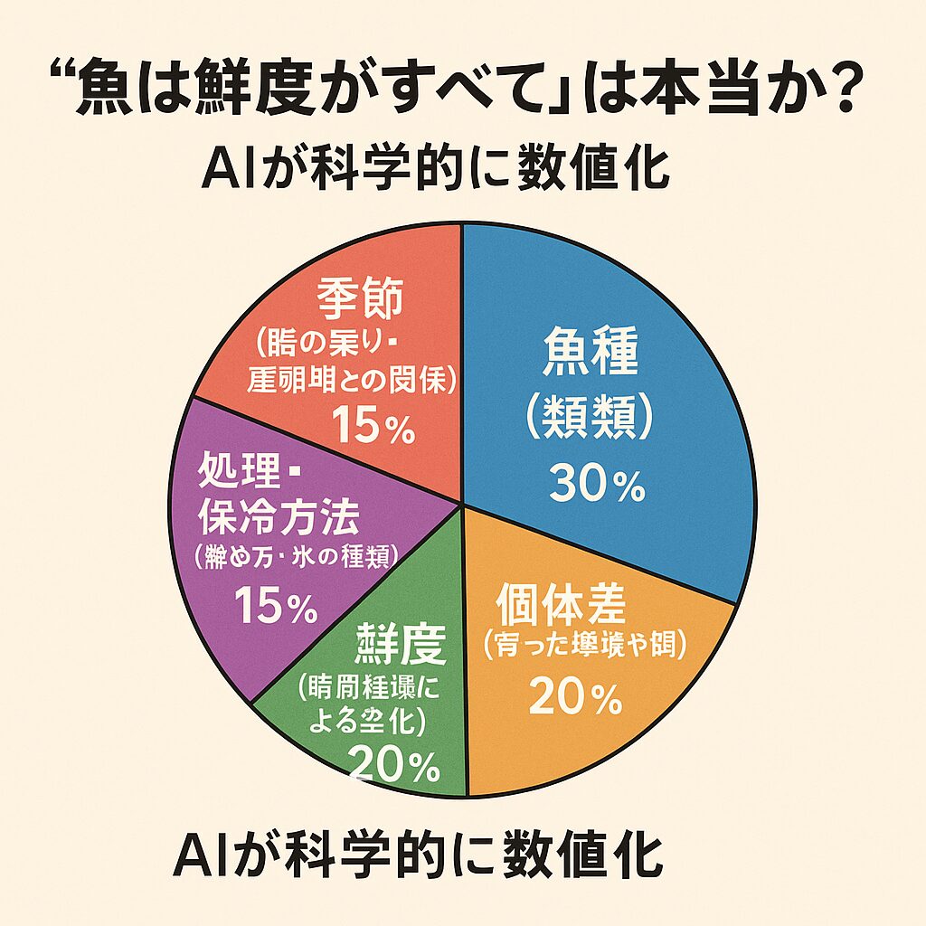 ・鮮度は全体の2割程度の要素に過ぎず、残り8割は魚種・個体差・季節・処理方法が握っています。