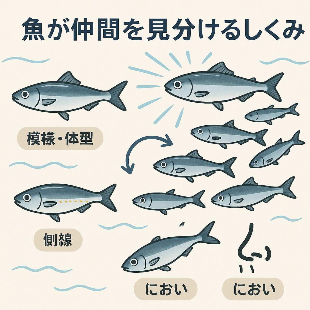 多くの魚は自分と同じ体色や模様の個体を仲間と認識します。