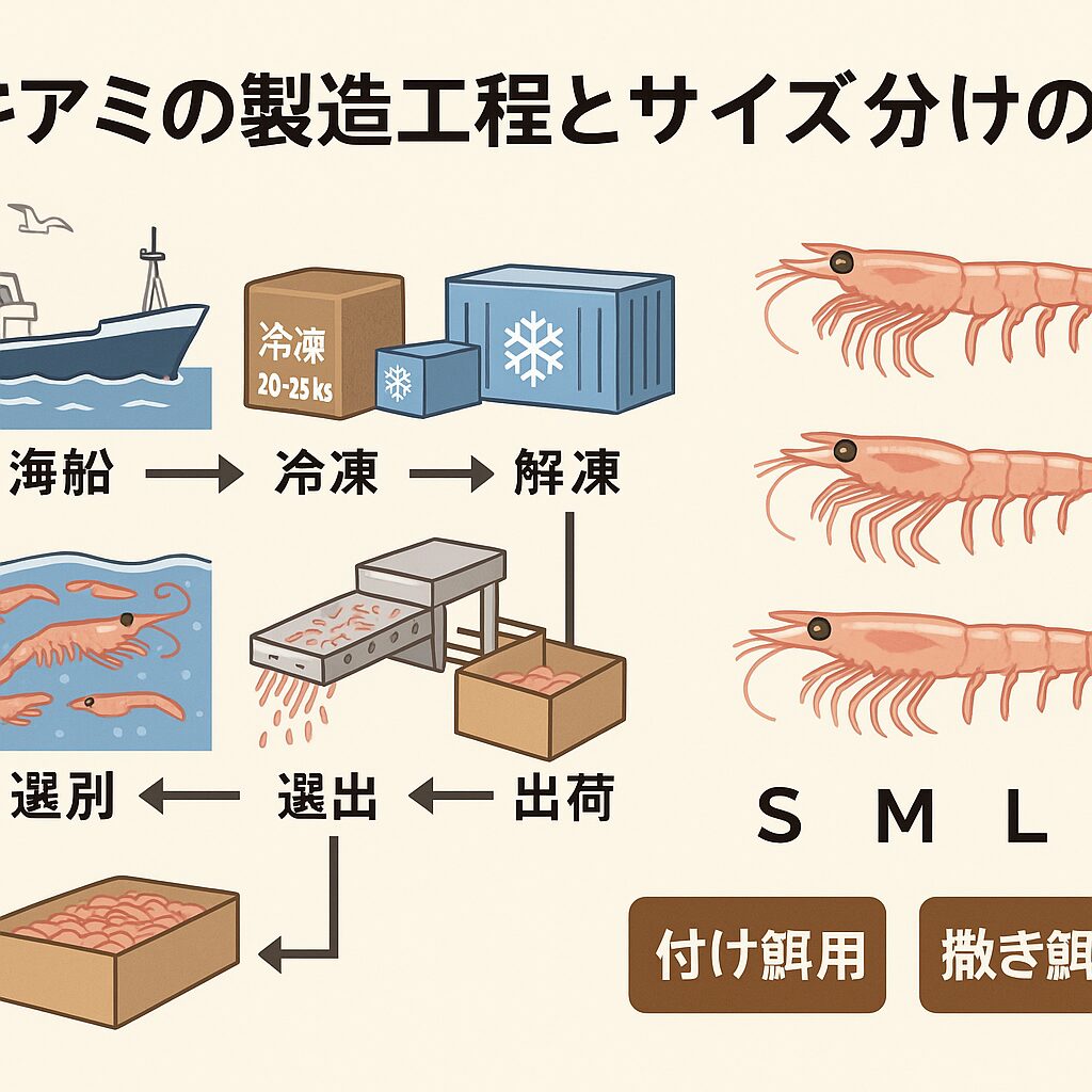 割れ・潰れ・変色あり → 撒き餌用(価格を抑えて大量販売)