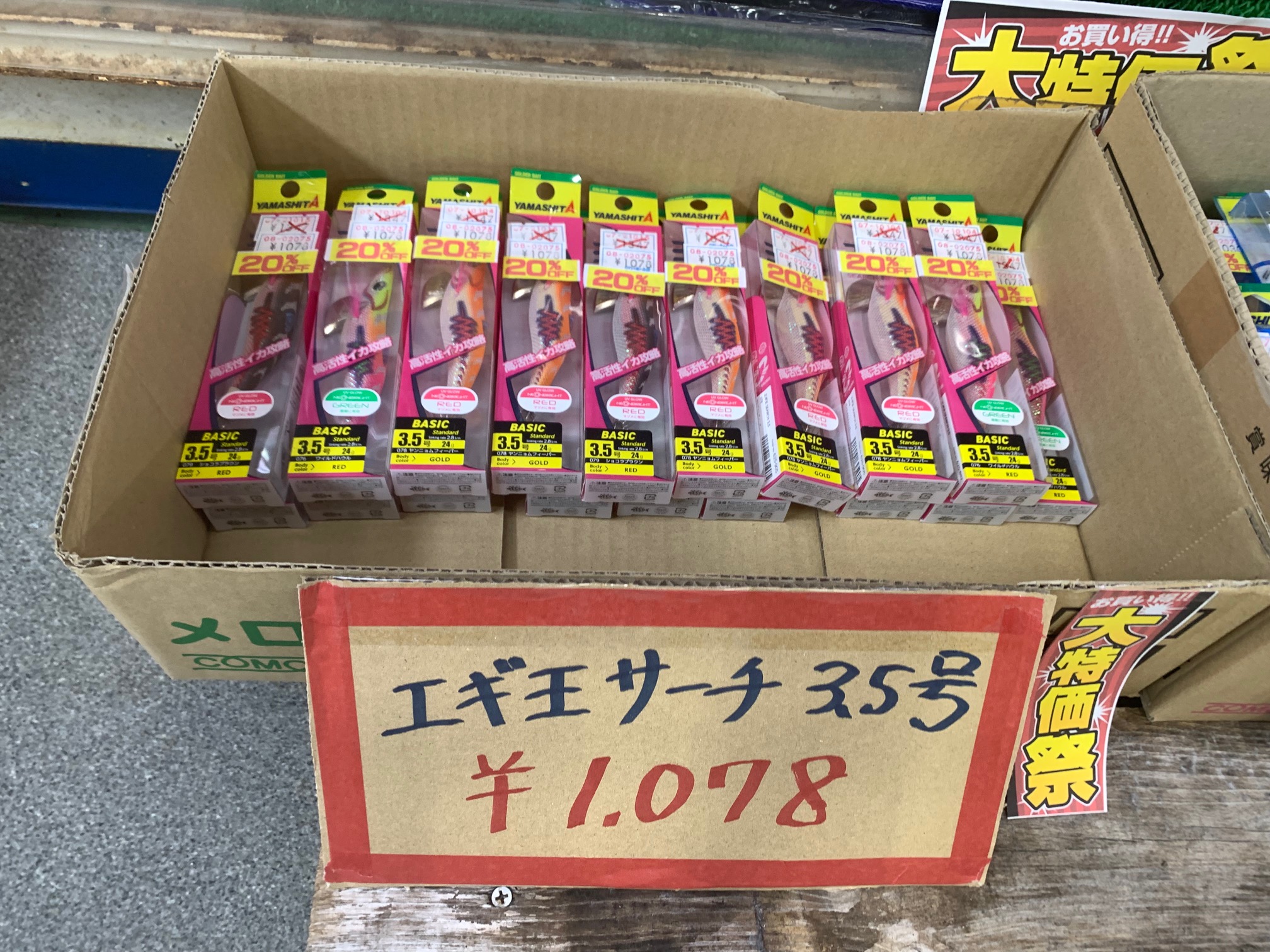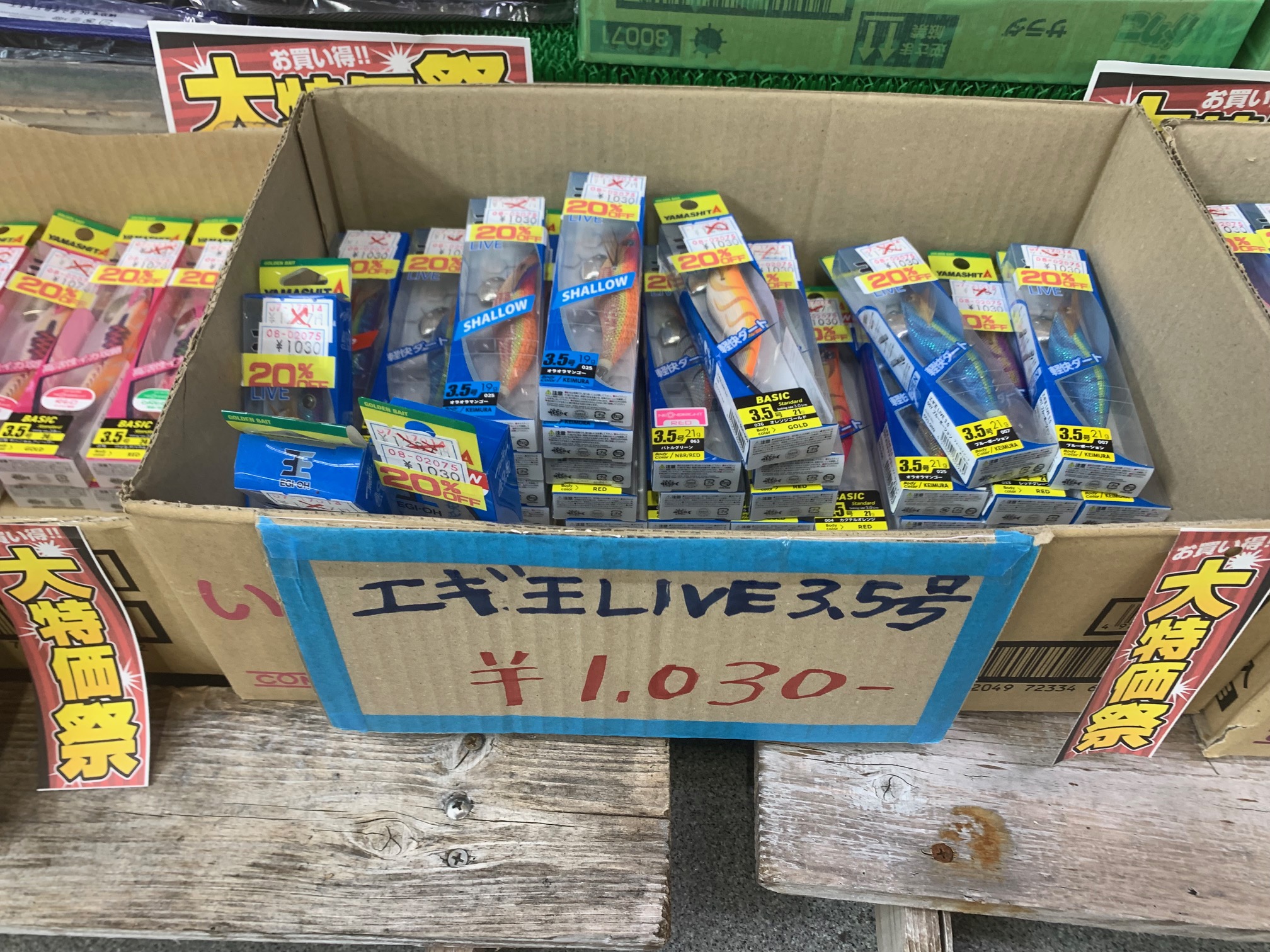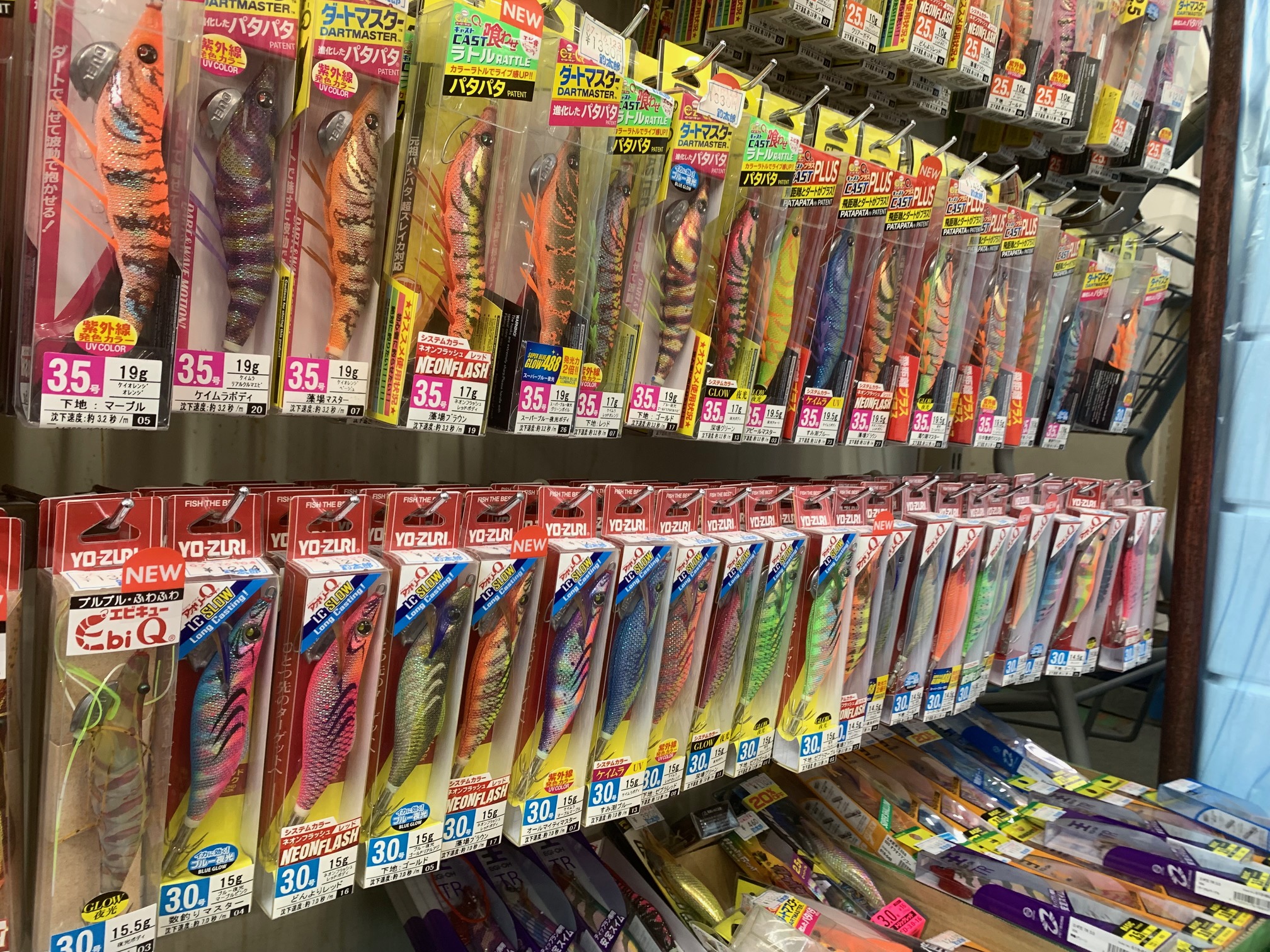 「初心者からベテランまで満足できるエギの品揃え」をテーマに、選びやすさと在庫の充実度に力を入れています。