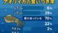 アオリイカの食いつき率シミュレーション (タナが合っている時・上方/下方それぞれ1m・2mのズレ)