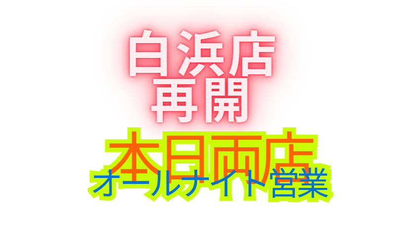 白浜店営業再開しました。両店今夜も24時間営業です。
