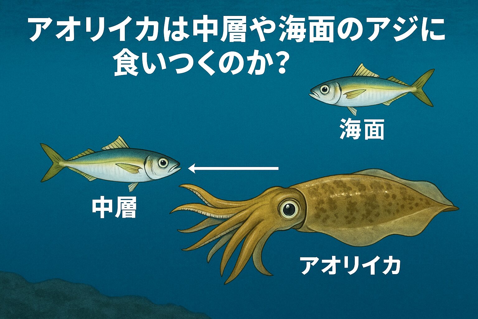 つまり、アオリイカは基本的に底付近にいるが、状況次第で中層・表層のアジにも食いつく柔軟性を持つのです。