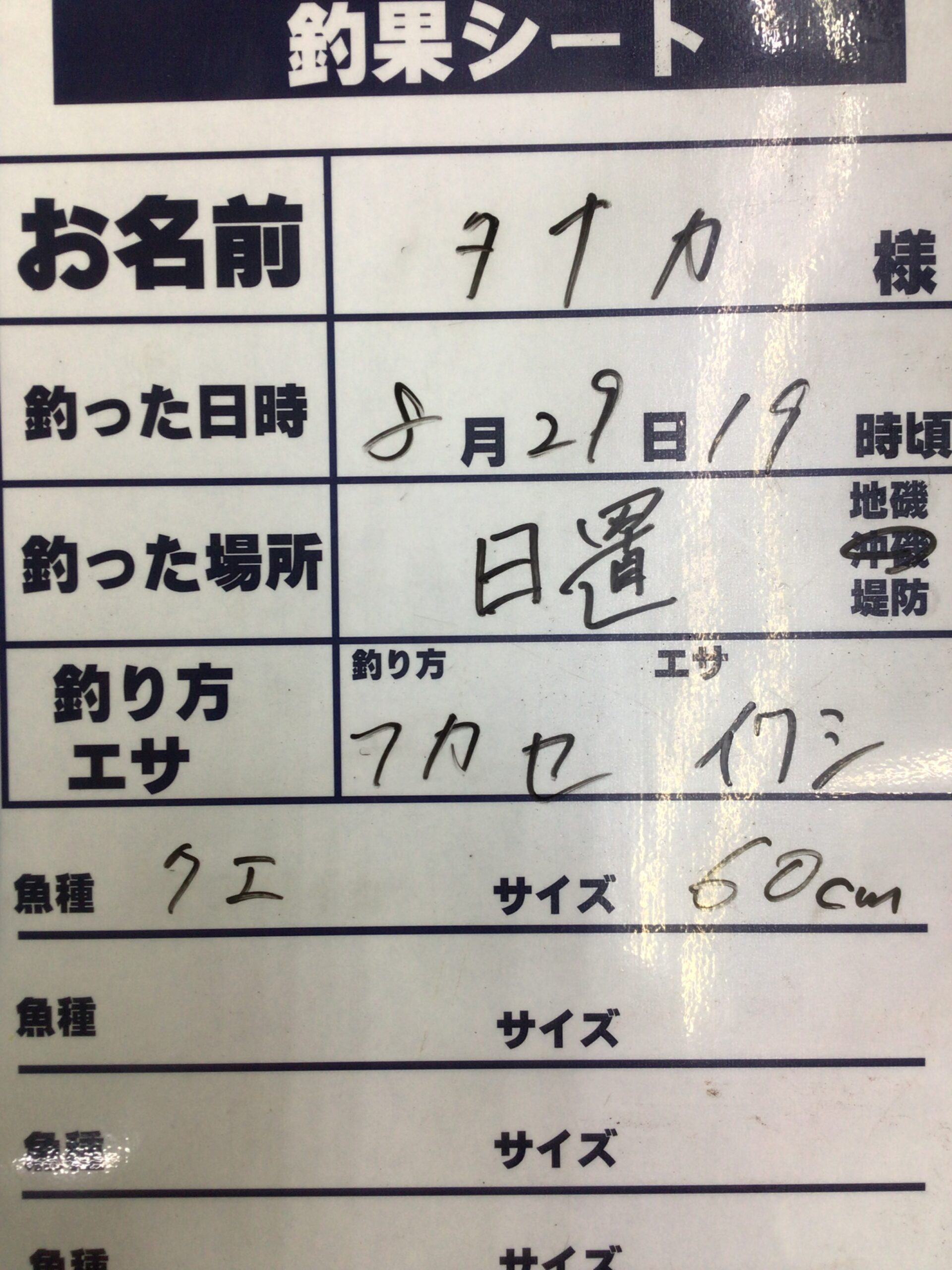 8/29 日置沖磯にてクエ60cm 夜釣りフカセ釣り