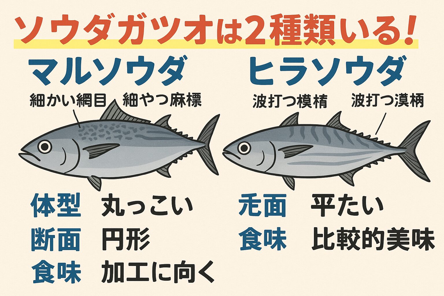 ソウダガツオには、マルソウダとヒラソウダの2種類が存在します。