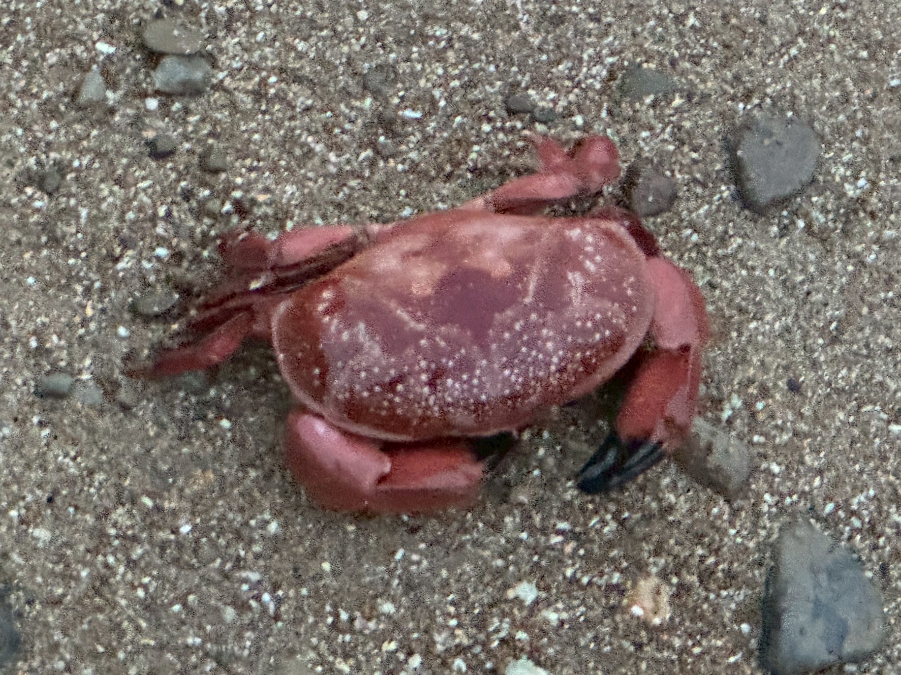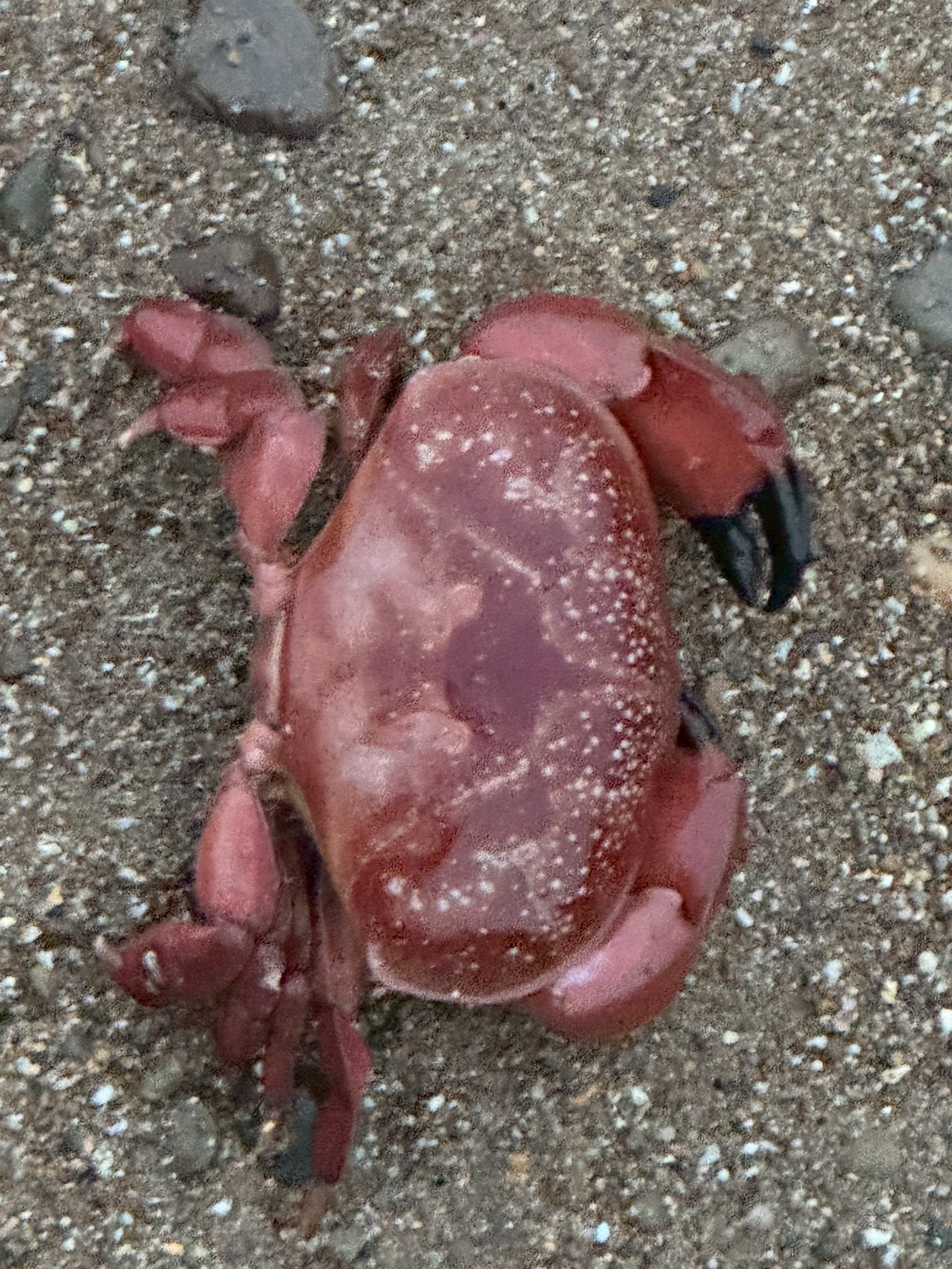 日頃見かけない、珍しいカニが砂浜に打ち上げられています。