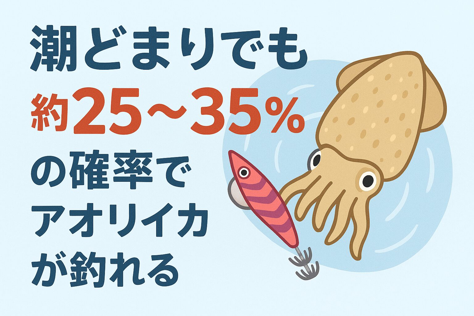 しかし実際には、潮どまりでもアオリイカが釣れる可能性は**約25〜35%**あることが、