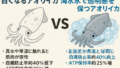 真水は細胞を壊し、イカの表面を白濁させやすいのに対し、海水氷は塩分で浸透圧を保ち、透明感を維持します。