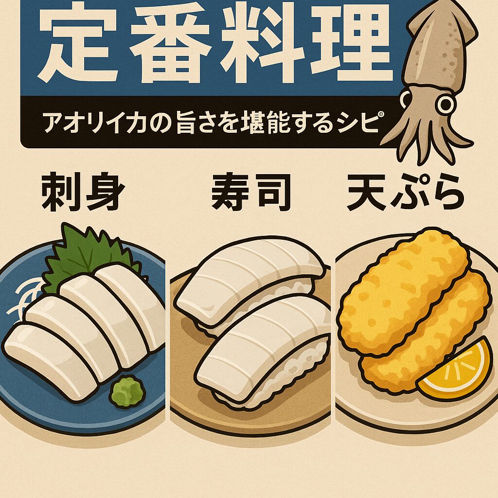 アオリイカの定番料理である 刺身・寿司・天ぷら は、素材の持つ甘みと旨みを最もシンプルに楽しめる調理法です。