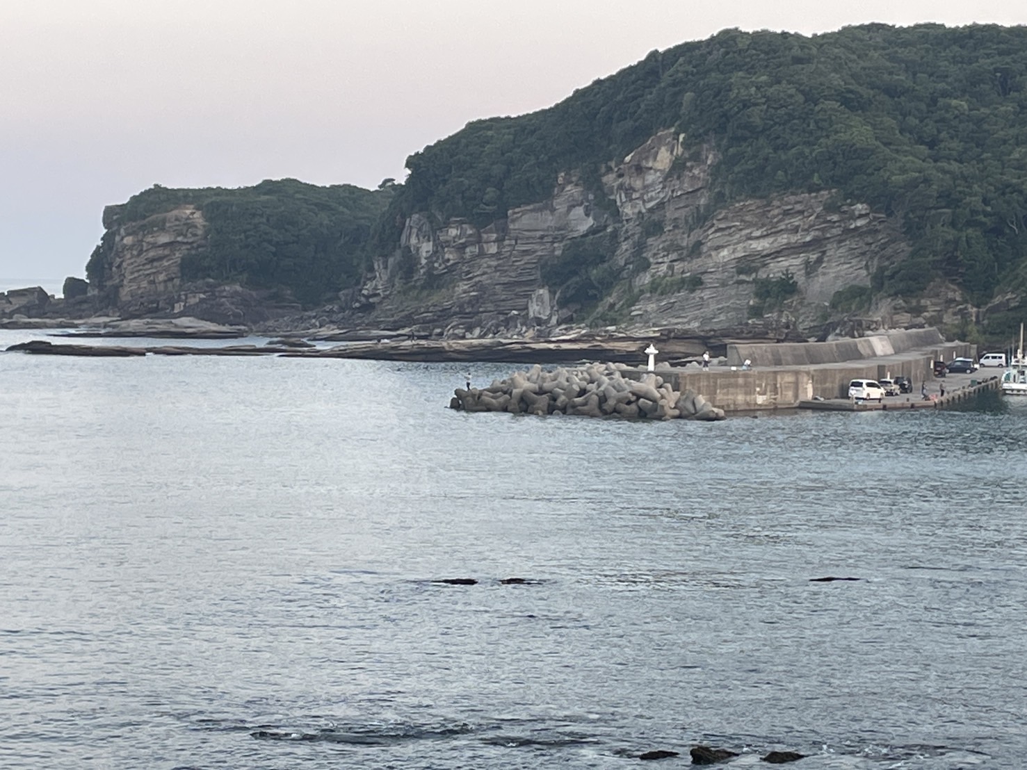 見草(みぐさ)港内には釣り人がいます