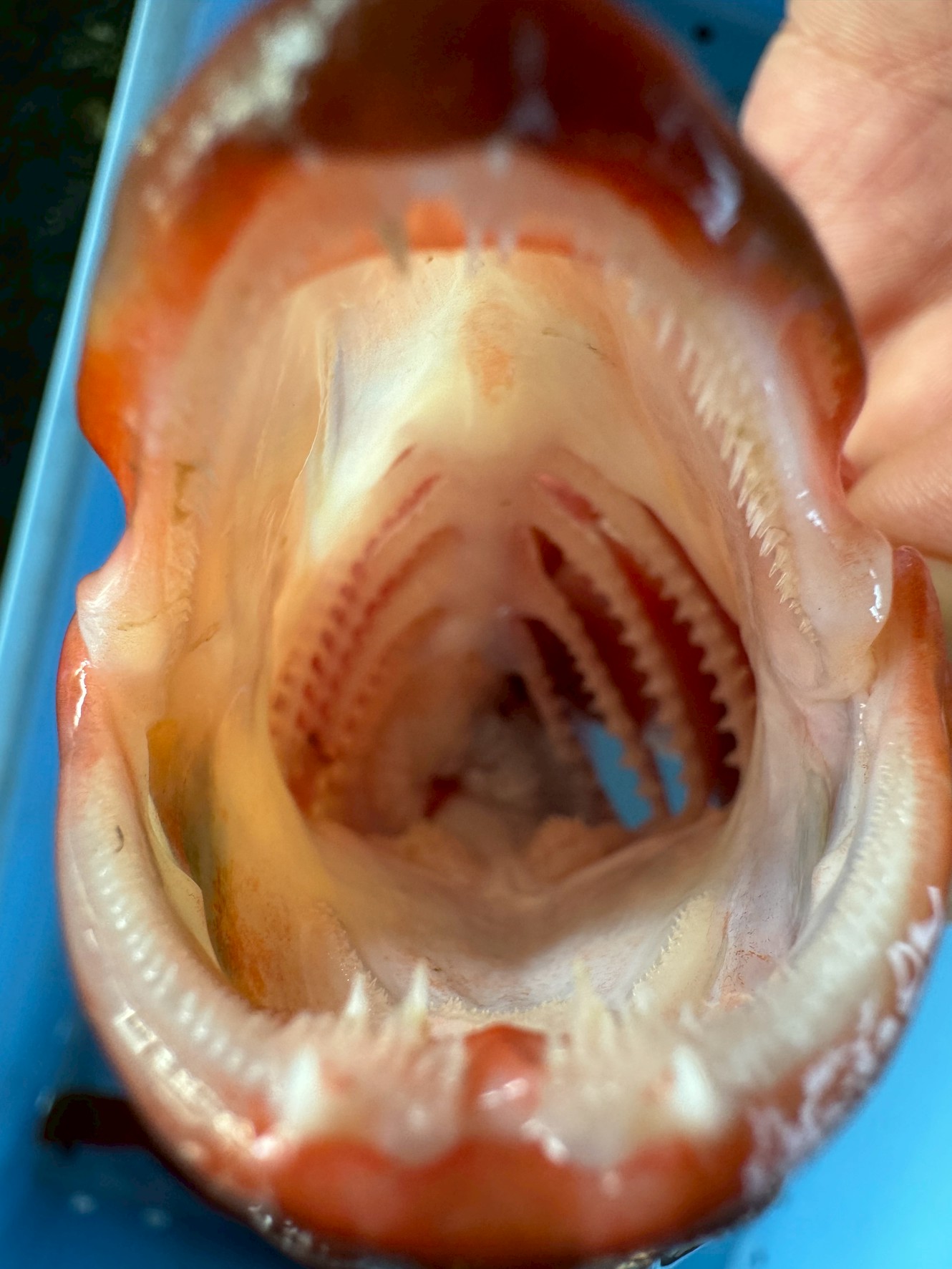 一見すると鋭くないように見えるアカハタの歯ですが、その口内には無数の小さな刺のような