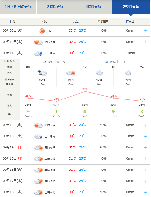 11日の未明に少しだけ雨が降る予報ですが、オールナイト営業です。