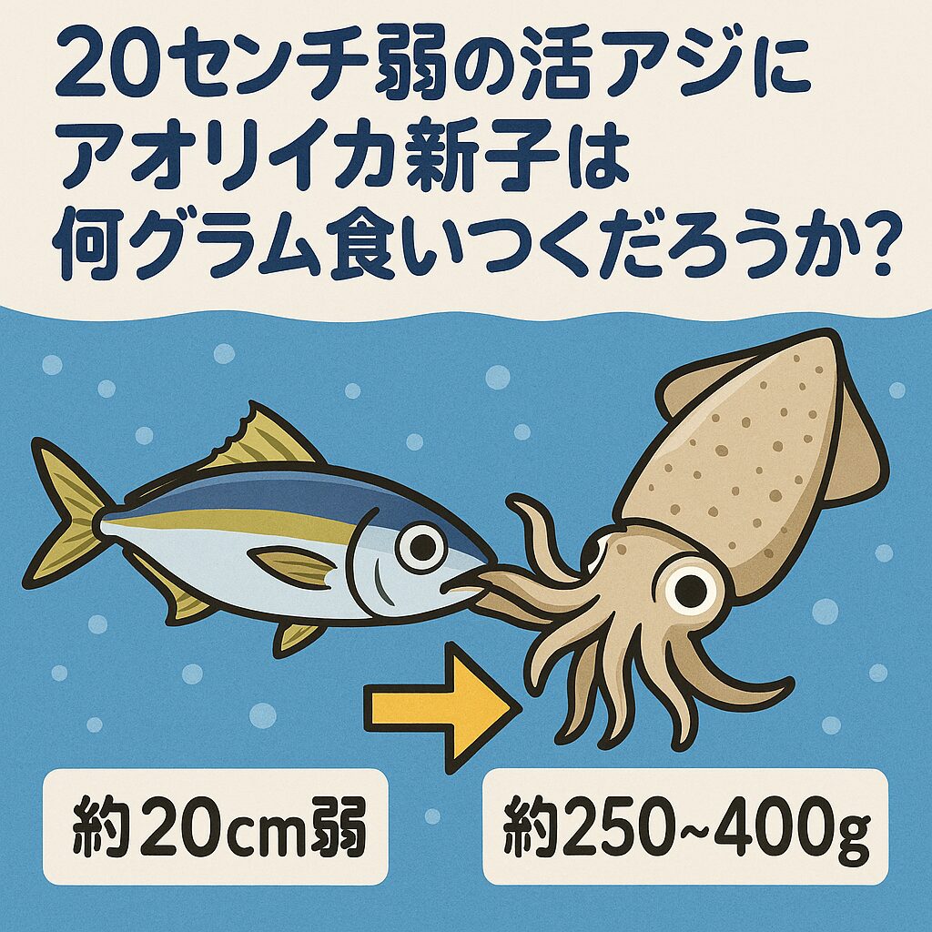 【AIシミュレーション】20cm弱の活アジに食いつくアオリイカ新子は何グラム?釣り人の責任と命への敬意を考える