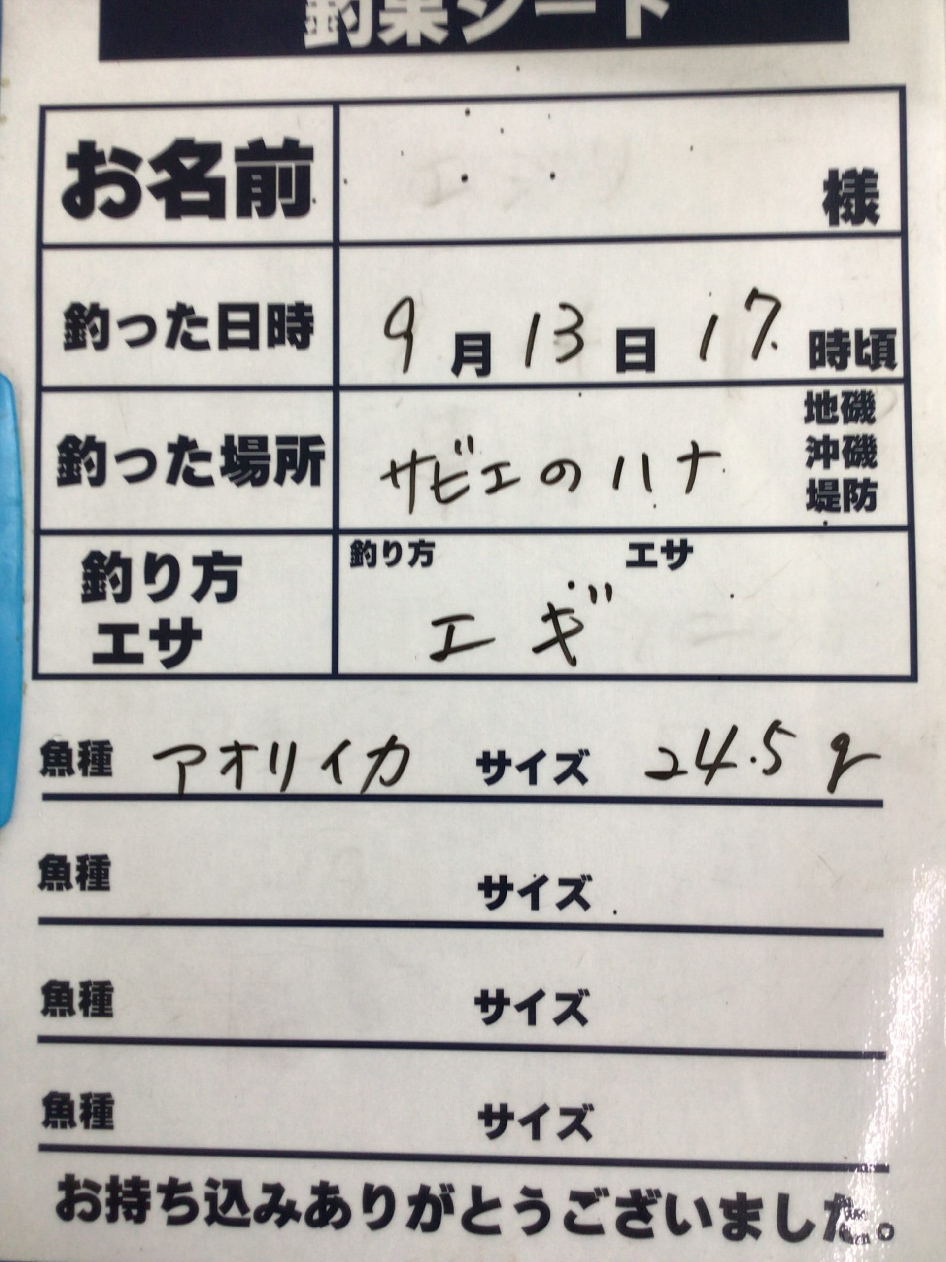 9/13アオリイカ245g釣果