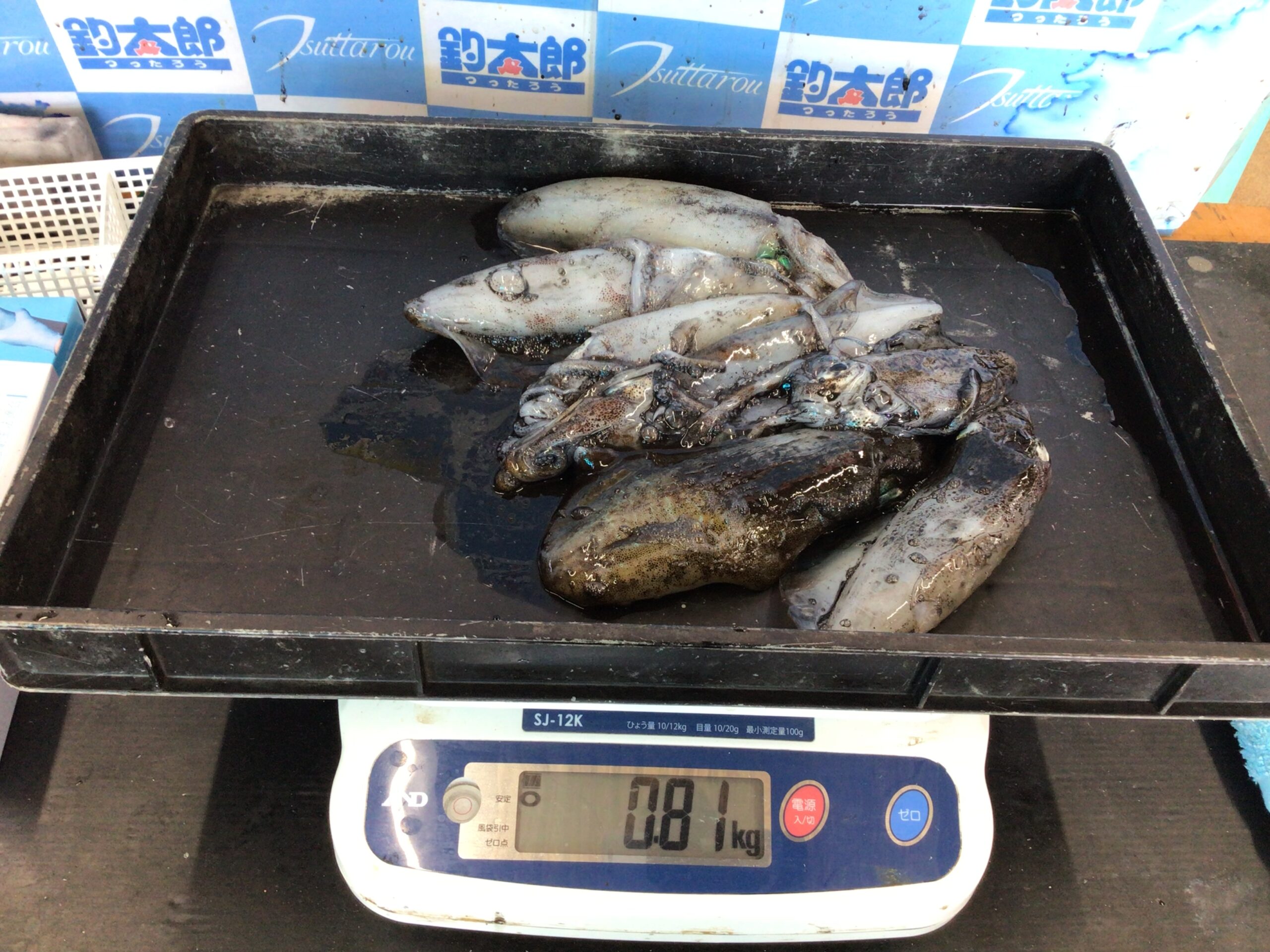 9/15 アオリイカ新子7杯で810g 白浜の地磯でエギング