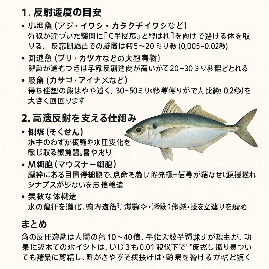 ・ルアーや仕掛けの影に魚が「瞬時に逃げる」のは、この数ミリ秒単位の反射神経が理由。