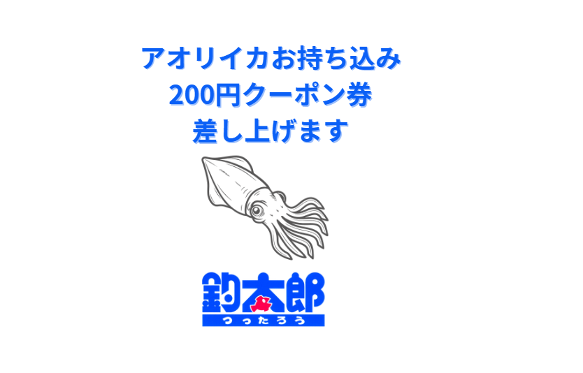 アオリイカお持ち込みいただければ200円クーポン券差し上げます。