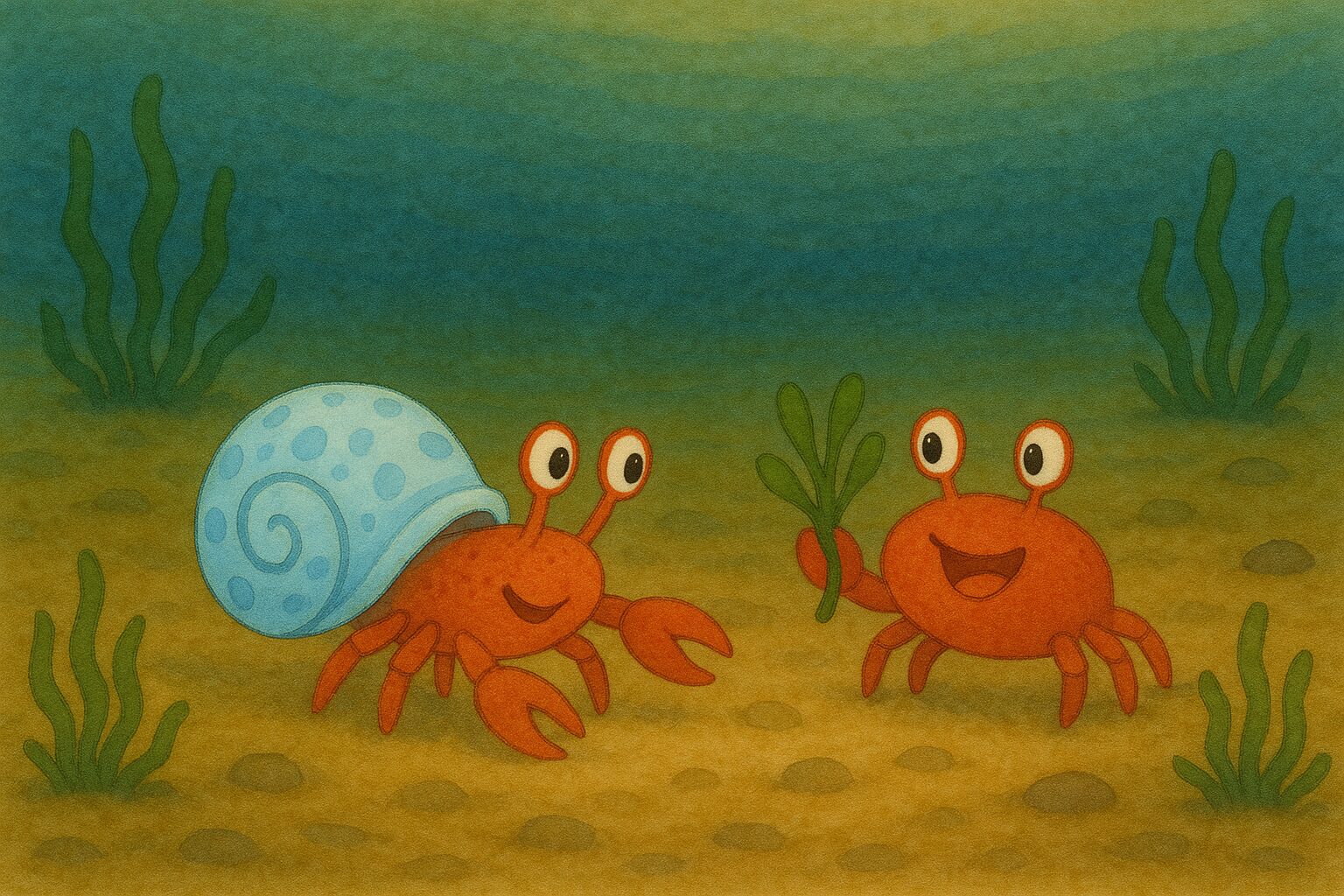 南紀の静かな入り江に、ひときわ小さなヒメヤドカリが暮らしていました。