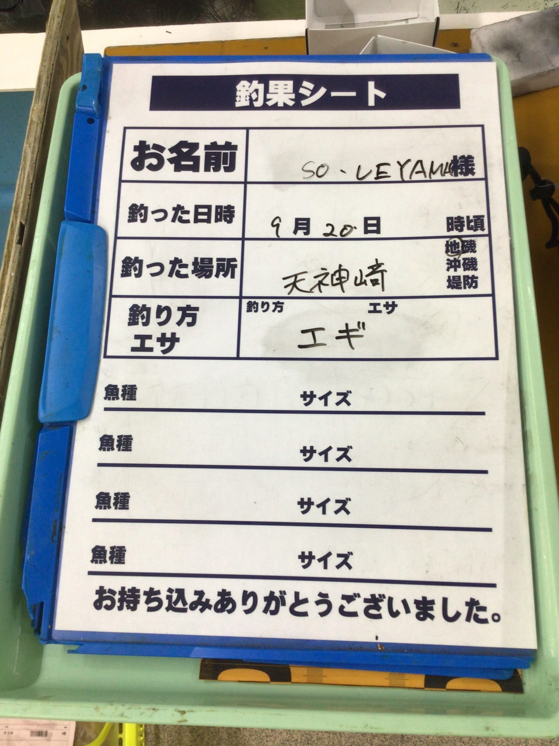 9/20天神崎にてアオリイカ持ち込み釣果 計300g