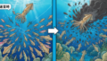 ・浅瀬の海藻帯にベイトが集まり、アオリイカが活発に捕食