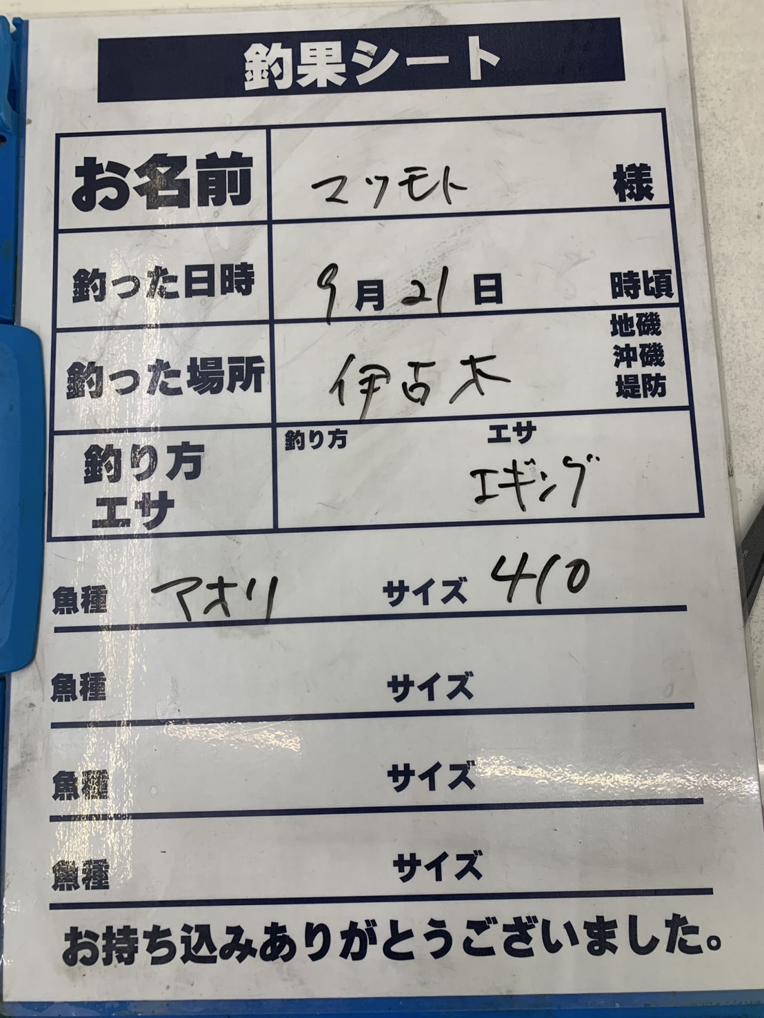 9/21 アオリイカの釣果410g 伊古木、エギングにて
