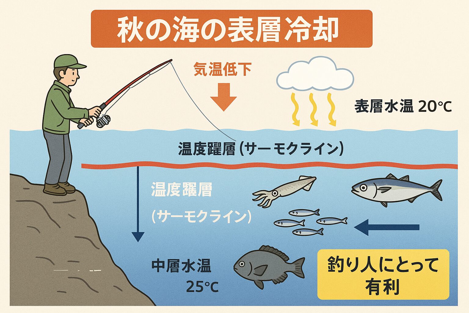 秋の海は、表層冷却による温度差が魚の活性を高める「釣り人に有利な季節」です。