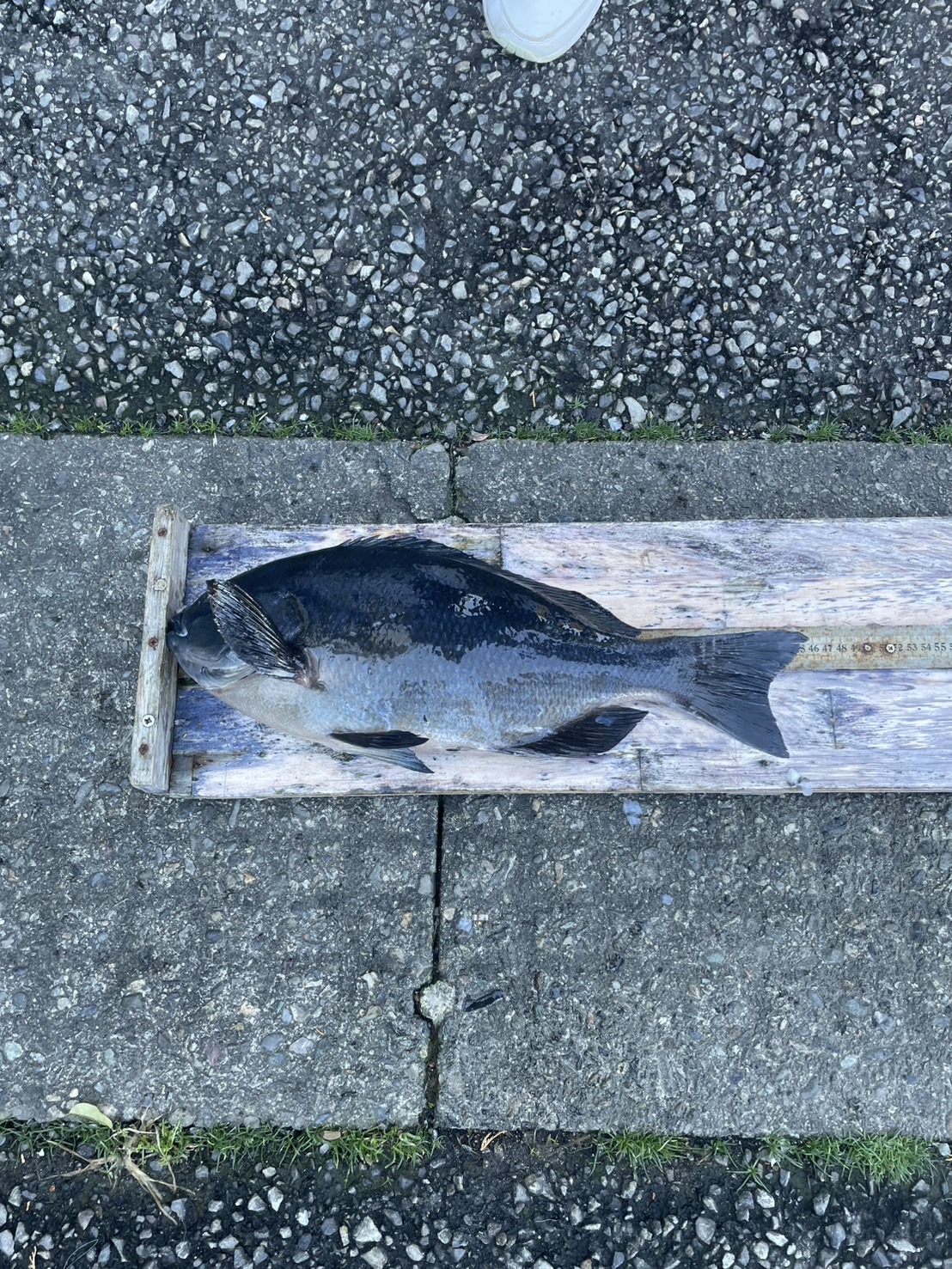 終了間際に諦めていたころ、超初心者の子が450円のウキで45.5cmのグレを釣って