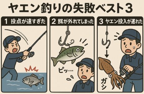 今回は多くの釣り人がやってしまう ヤエン釣りの失敗ベスト3 を解説し、改善のためのコツを紹介します。
