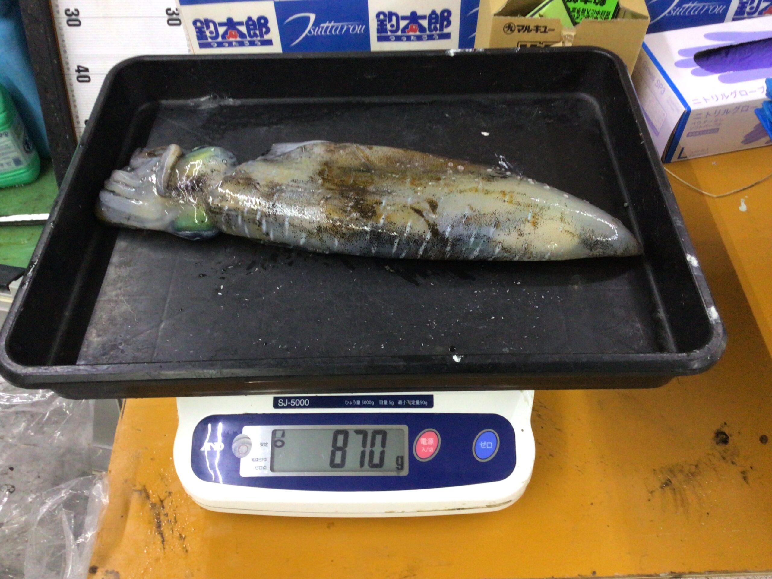 10/3見草地磯にて夜釣り釣果 アオリイカ870g 笛鯛51cm