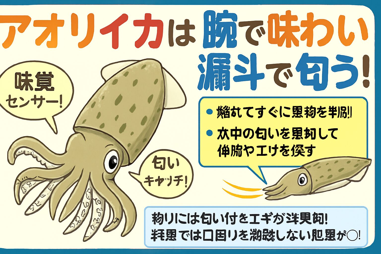 今回は、アオリイカがどのように「味」と「匂い」を感じ取っているのか、科学的な視点から解説します。