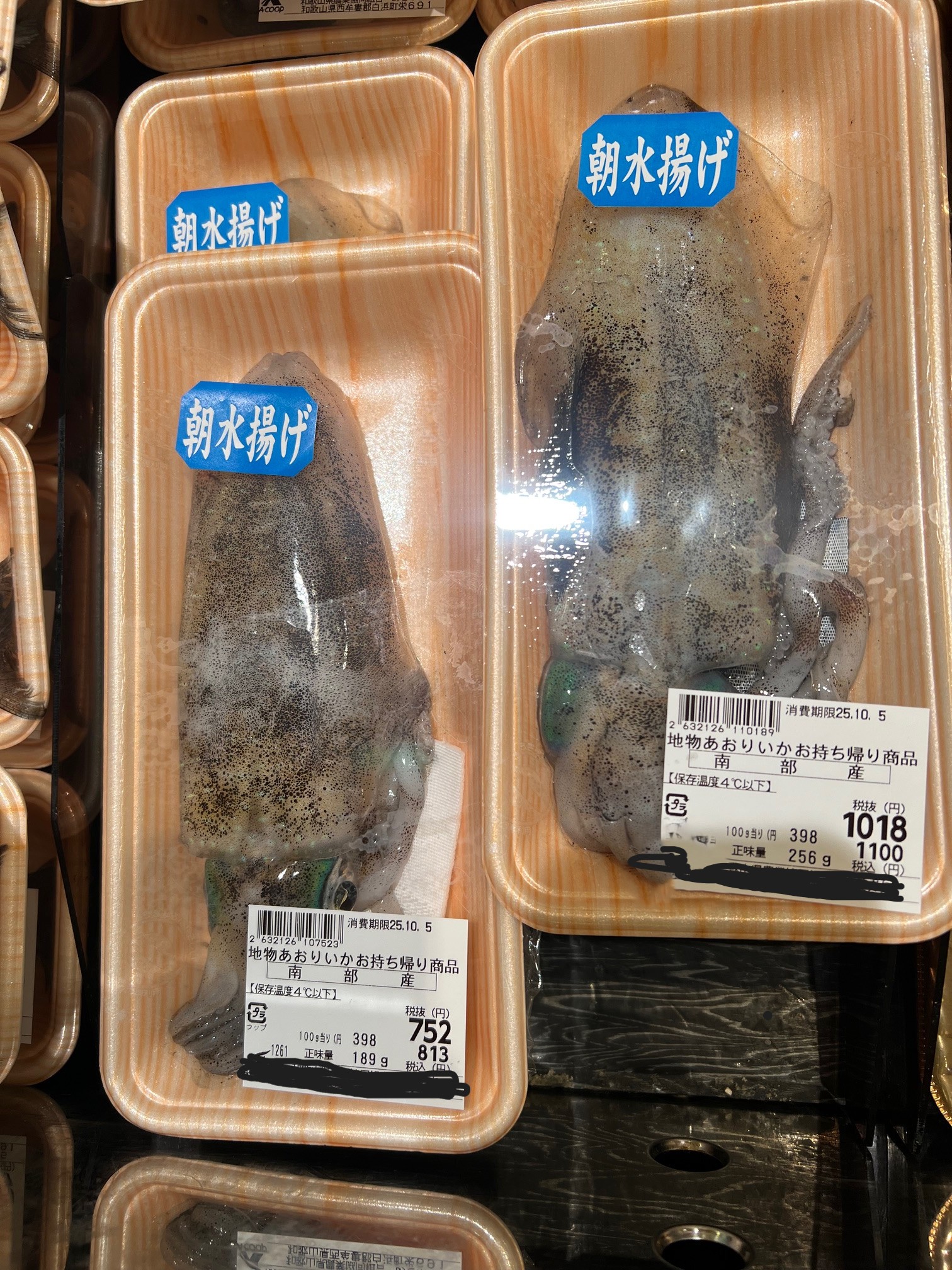 地物アオリイカの値段は? 中トロ、アワビ、和牛クラス!? アオリイカ生態、釣り情報関連 2025.10.06 某スーパー「朝水揚げ 地物アオリイカ」 189g ¥752、256g ¥1,018 で販売していました。 1キロ換算 ¥4,300 100g当り430円です。 ちょうど「中トロ、アワビ、和牛」クラスと同じですね。