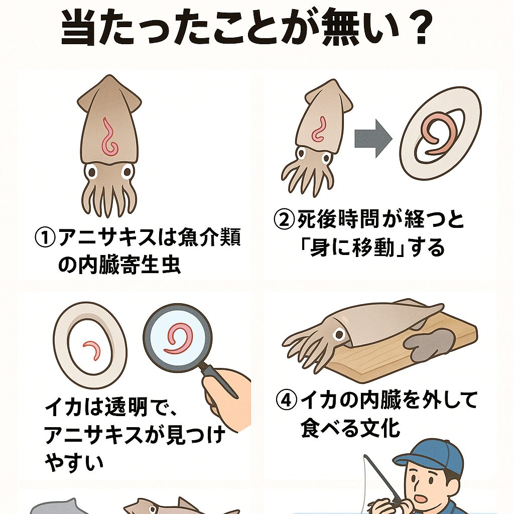 実は「釣りたてのイカでアニサキスに当たった」という話がほとんど聞かれないのには、明確な理由がいくつもあります。