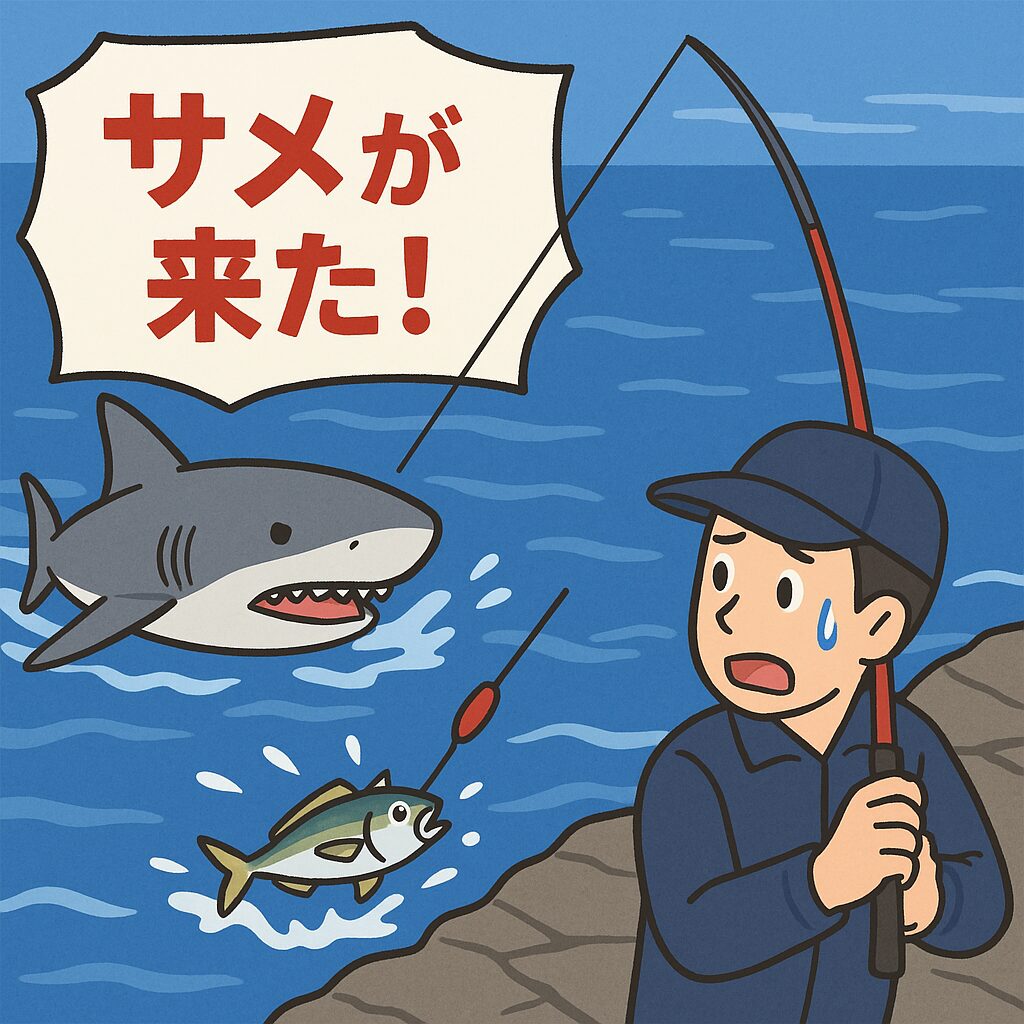 ヤエン釣りでは、アオリイカを狙って生きたアジを泳がせるため、魚食性の強いサメにとっては格好の餌信号になります。