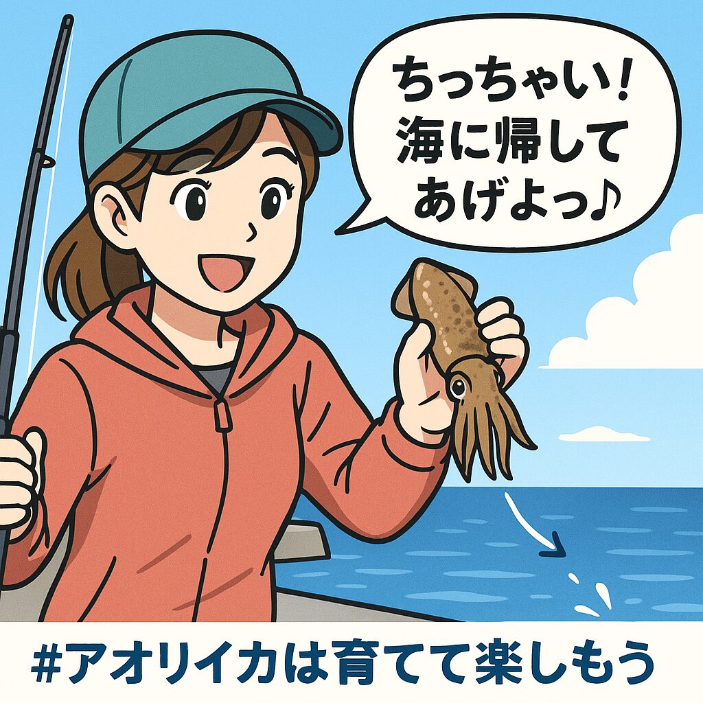 小さすぎるアオリイカ(特に胴長15cm以下・重さ150g未満)はできるだけリリースするのがおすすめです。