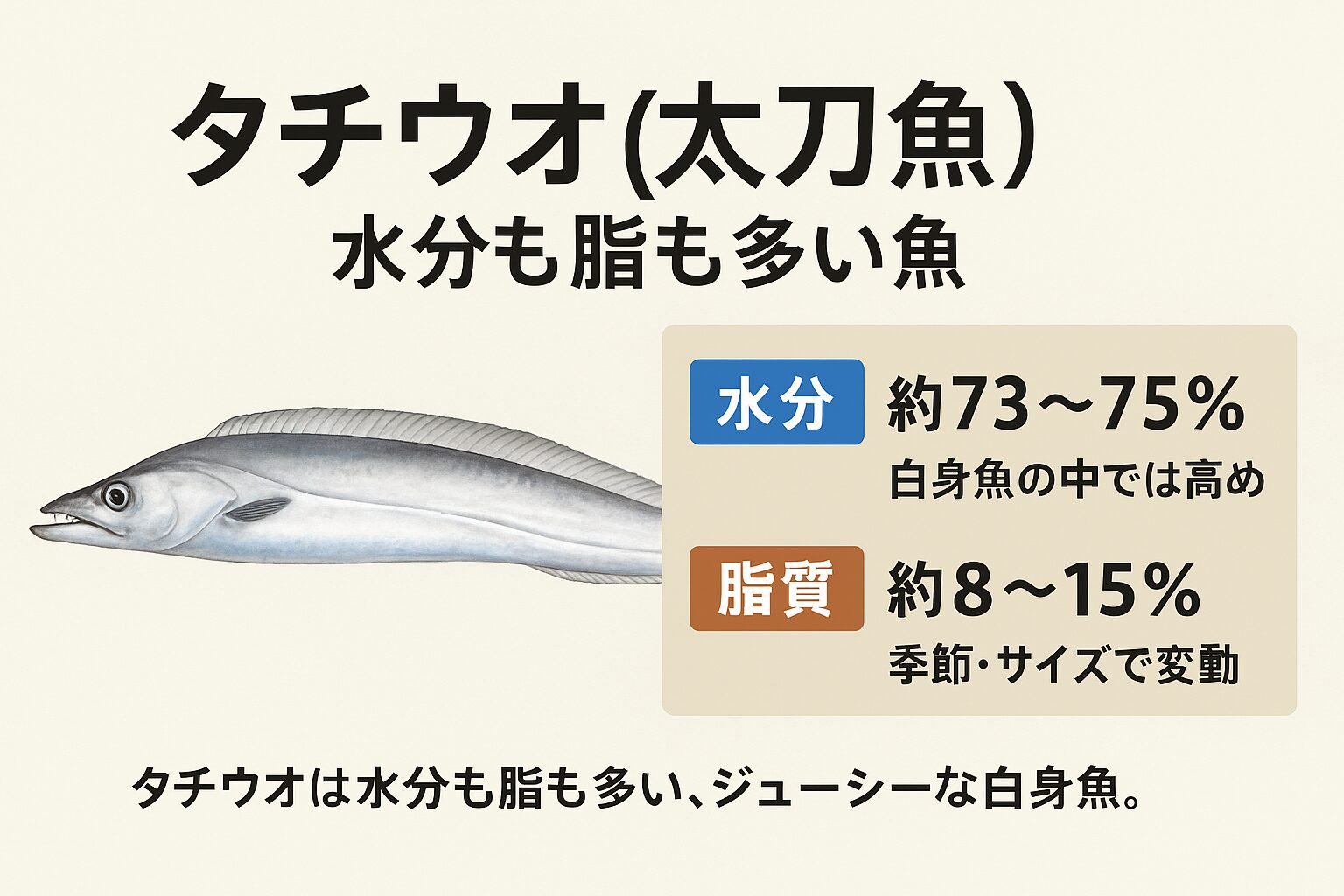 そんなタチウオの最大の魅力は、水分と脂質の両方が豊富という点。