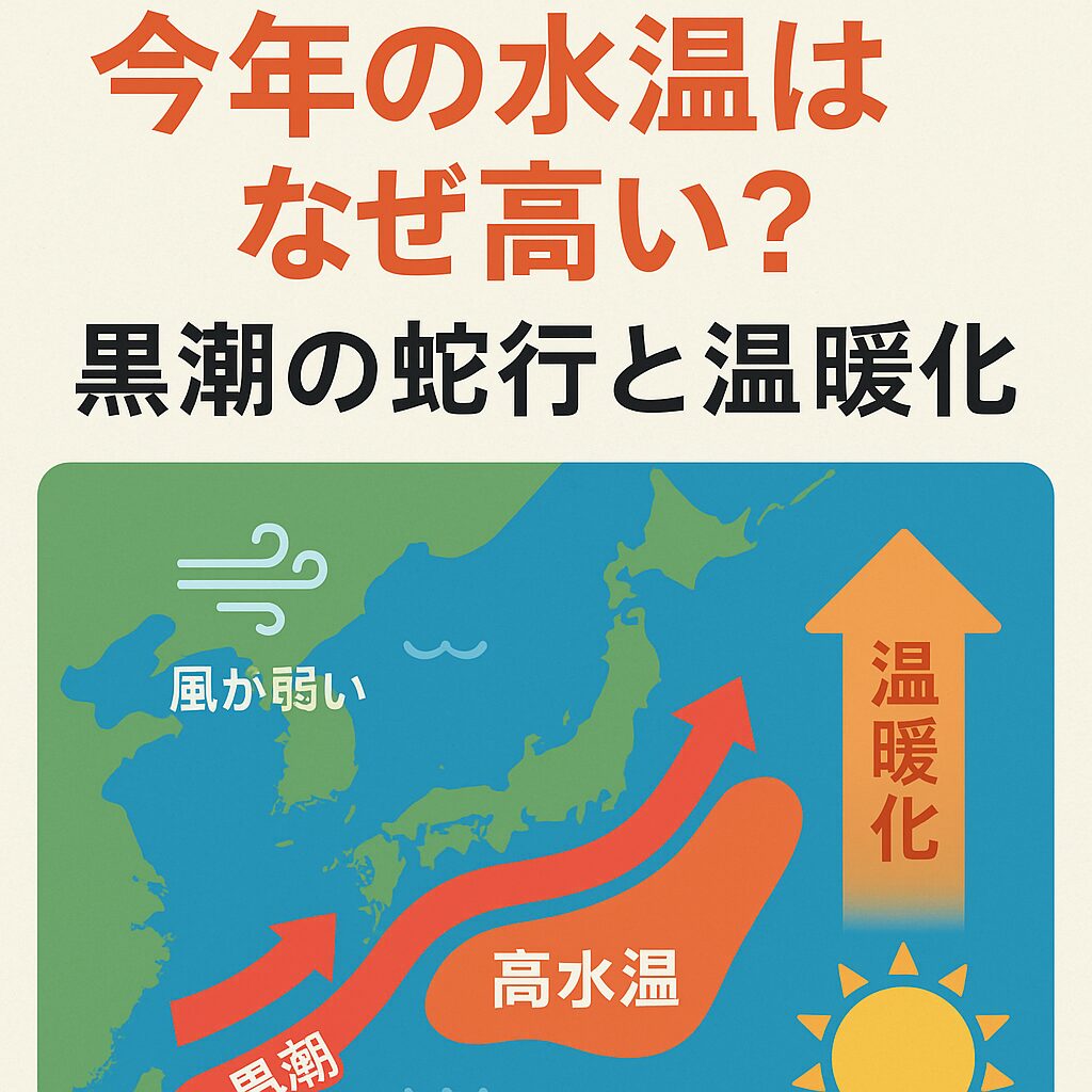 今年の水温上昇は、地球温暖化・黒潮蛇行・風の弱さ・エルニーニョなど、複数の要因が重なった結果です。