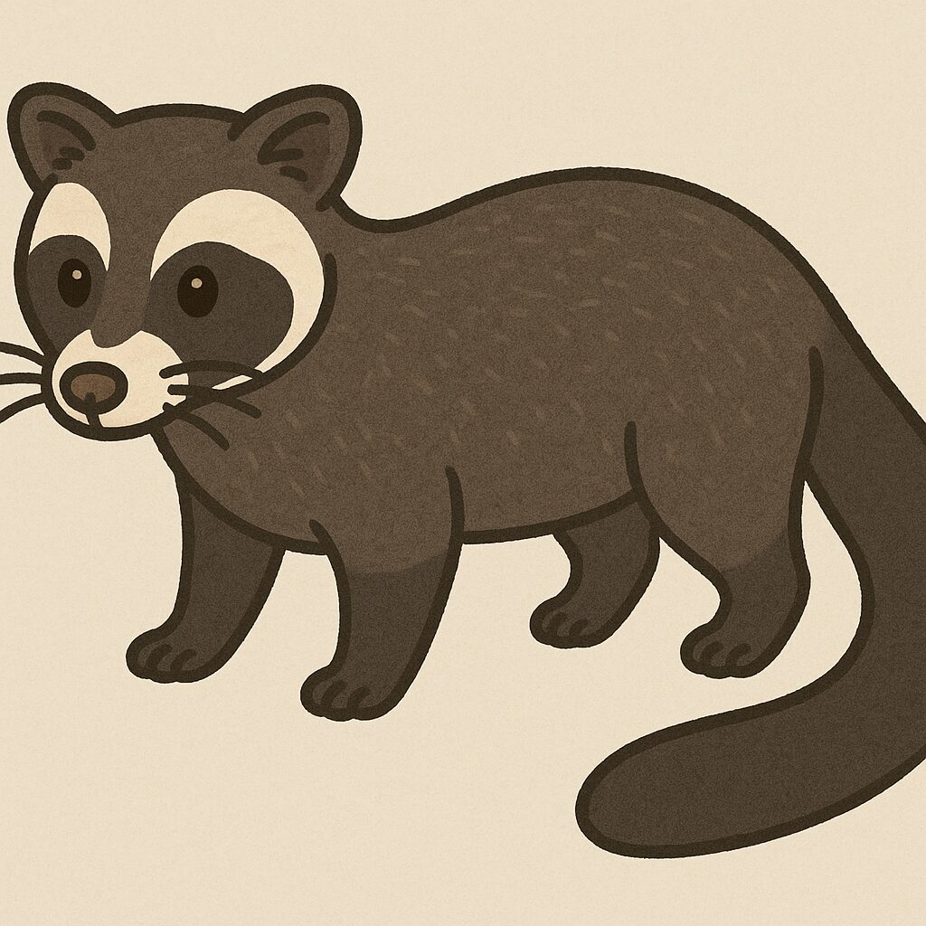 ・夜行性の中型哺乳類(ネコ科に近いジャコウネコの仲間)
