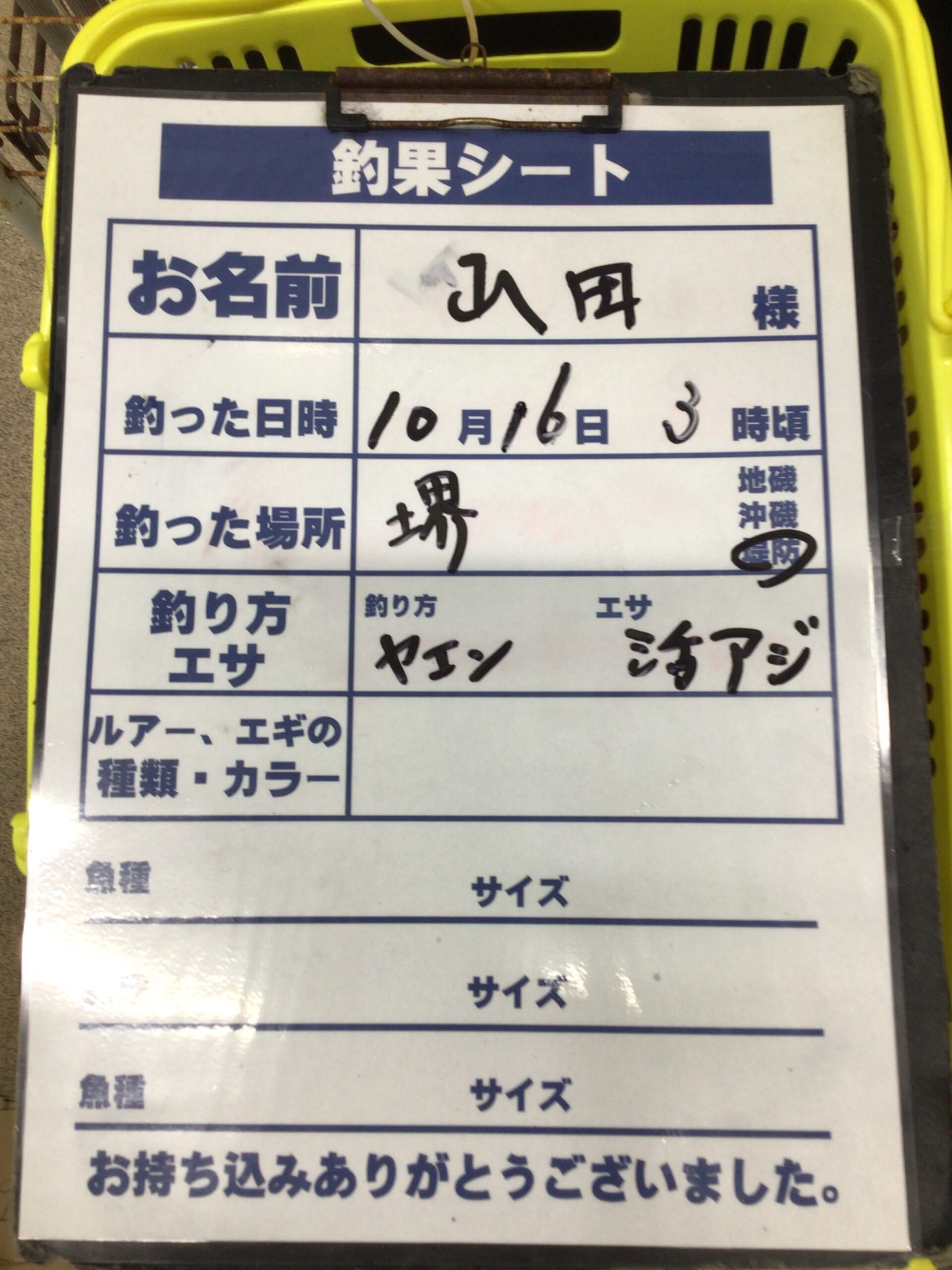 10/16 アオリイカの釣果 2杯770g(最高580g) 堺漁港、ヤエン釣りにて