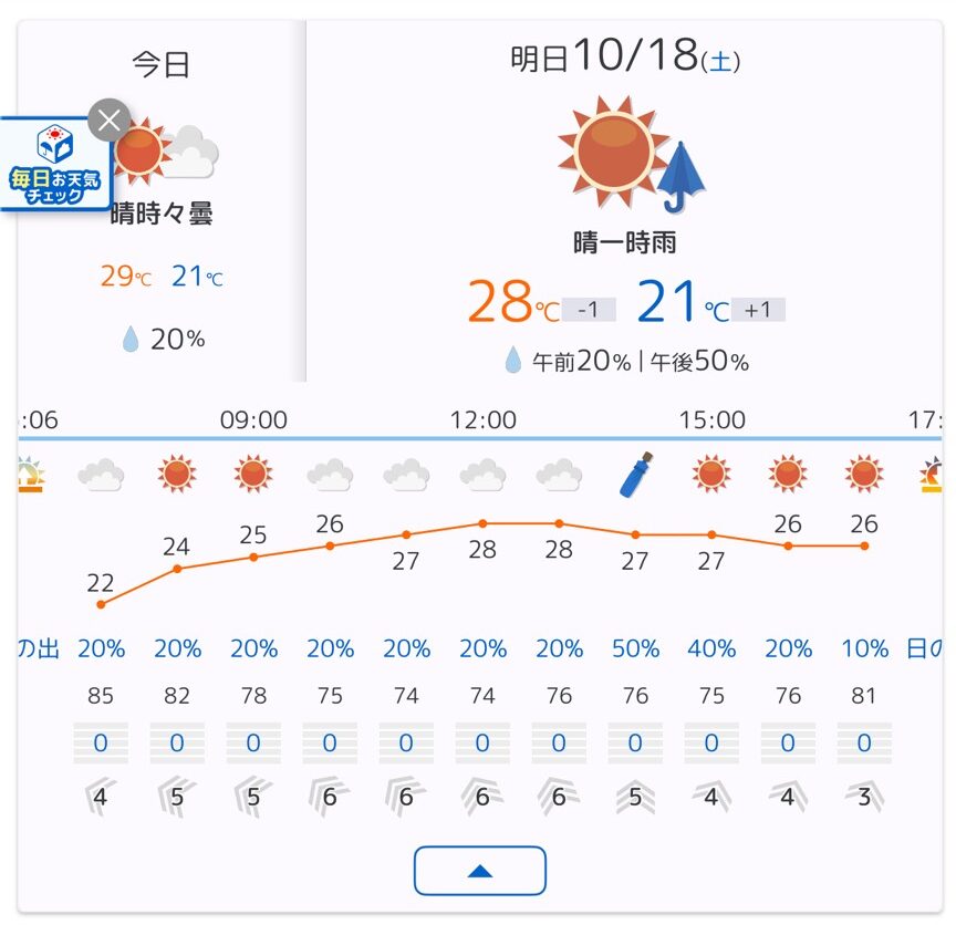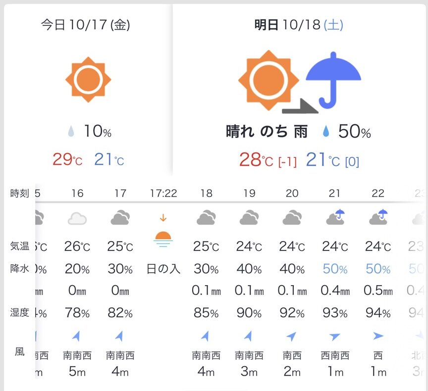 ・ヤフー天気は、夜に少し雨