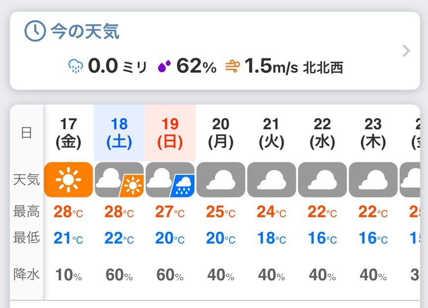 ・ウェザーニュースは、雨なしだが60%