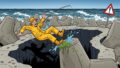 みなべ店前の堤防は、毎朝のように小アジの群れが接岸しています。