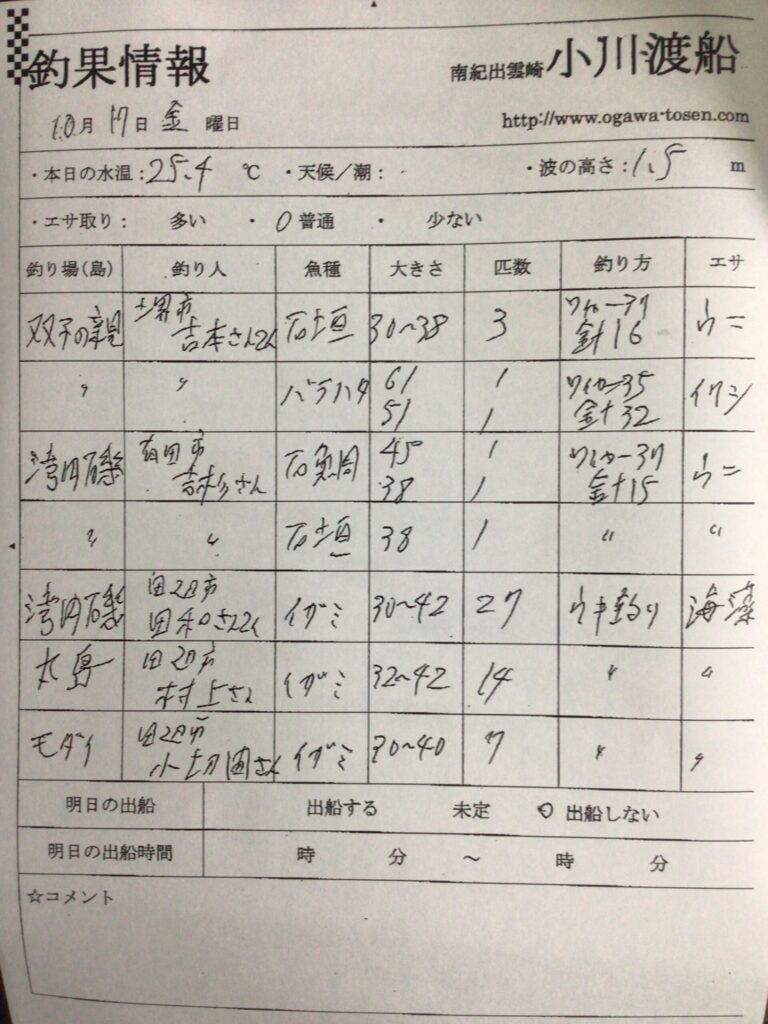 南紀地方 イガミ釣り好調。