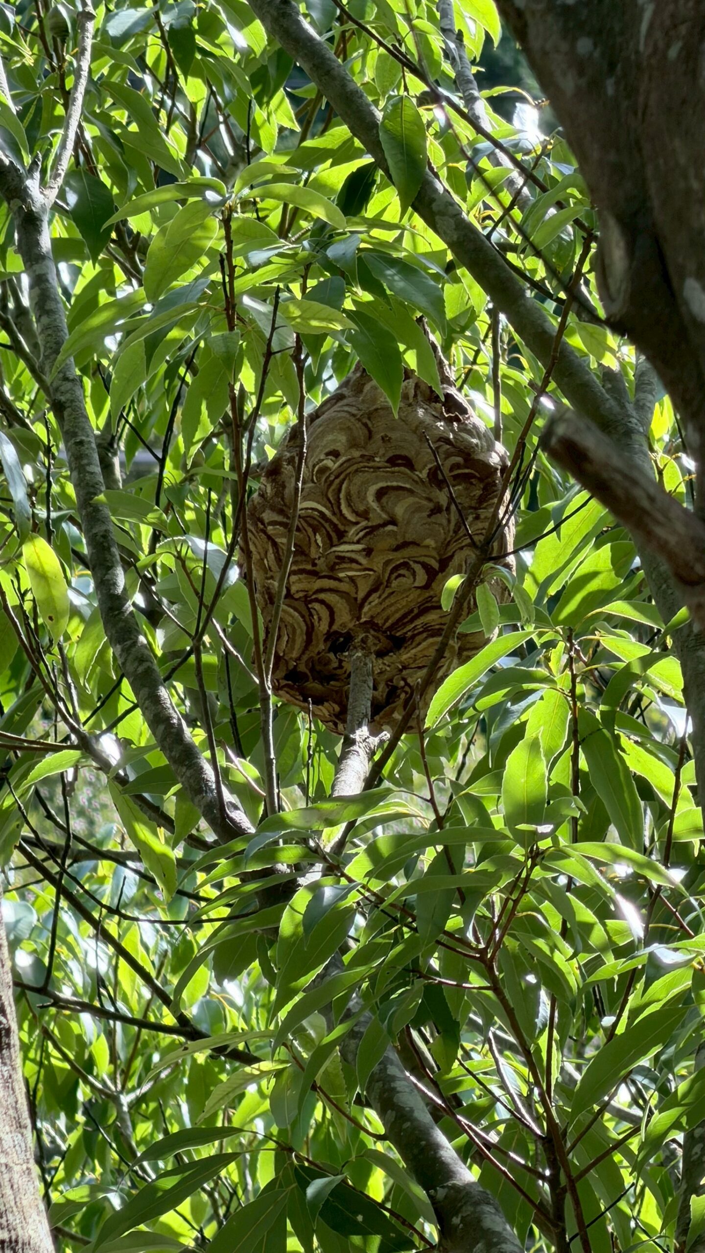 白浜店駐車場の外の木にスズメバチの巣があります。ご注意ください。