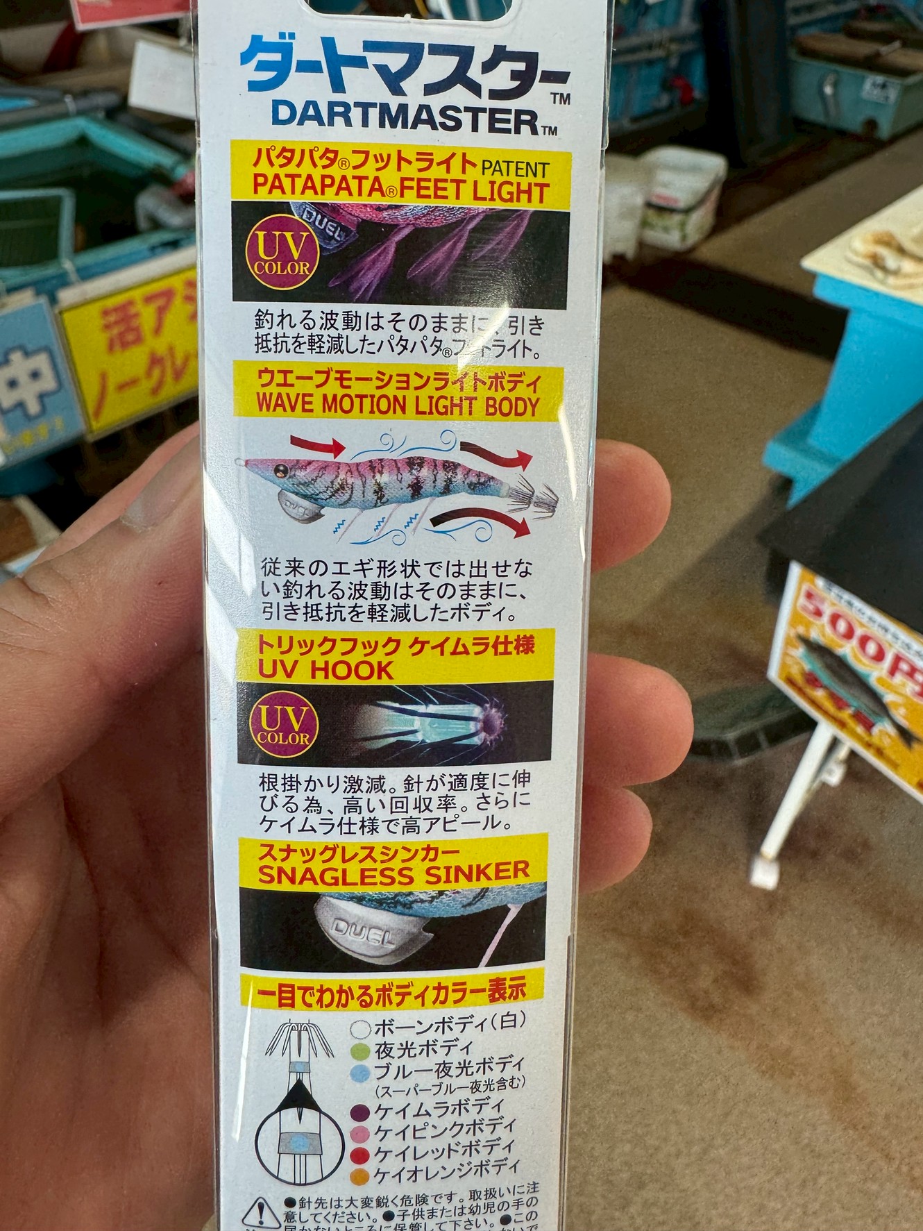 紫外線に反応して妖しく光る「ケイムラ」仕様のトリックフックを搭載。