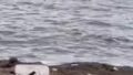 大潮の満潮時で、磯が水没しています。