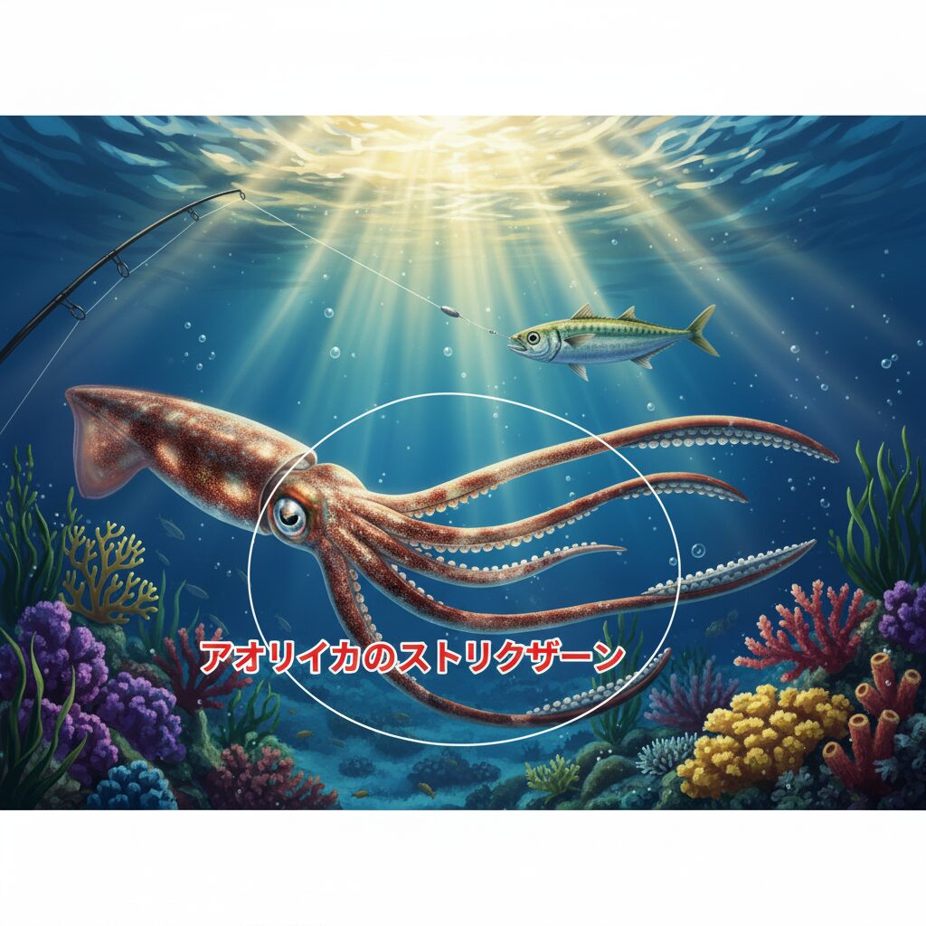 アジが底から離れすぎると、イカの目の届く範囲から外れてしまいます。
